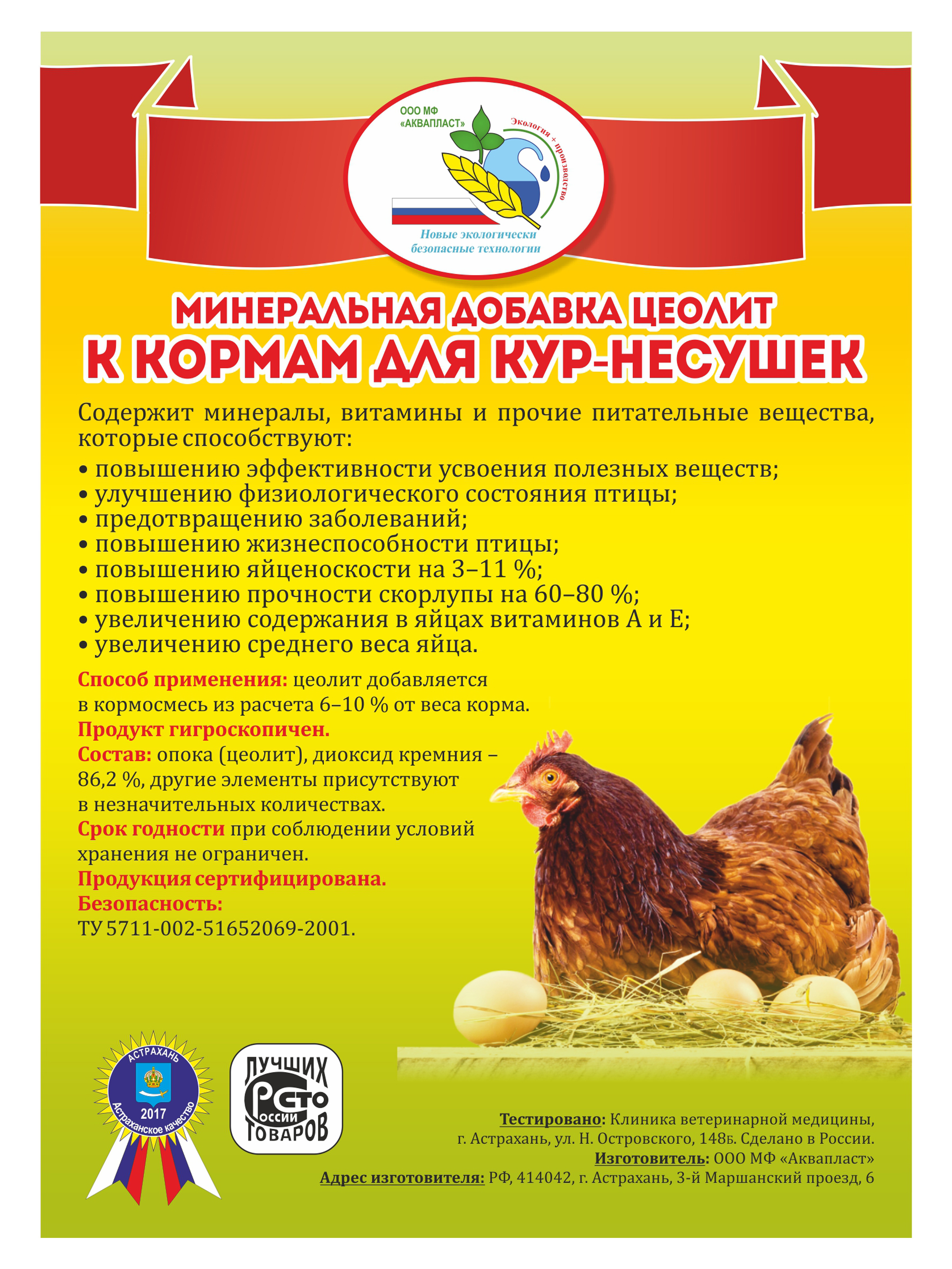 Минеральная добавка цеолит к кормам для цыплят 6000 гр. (4 шт.)