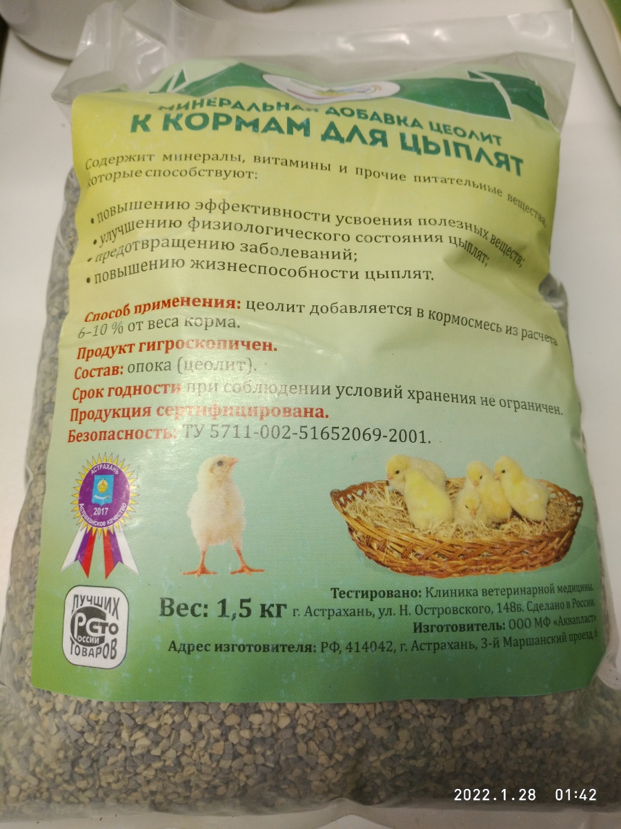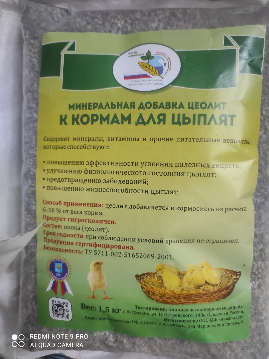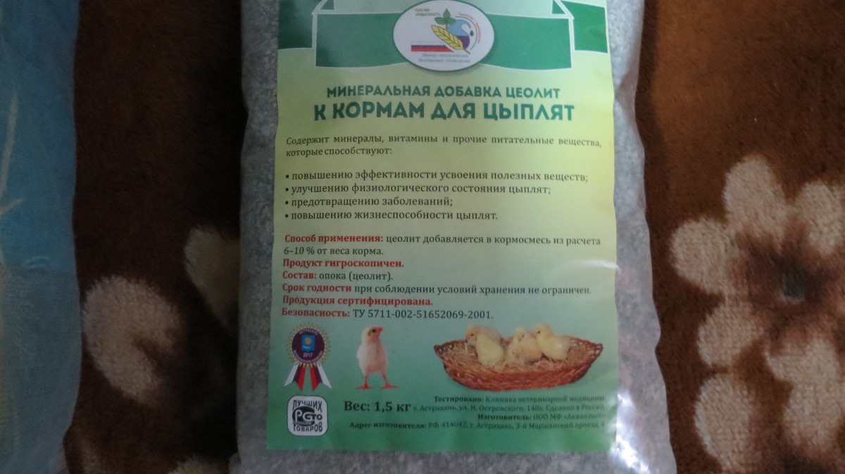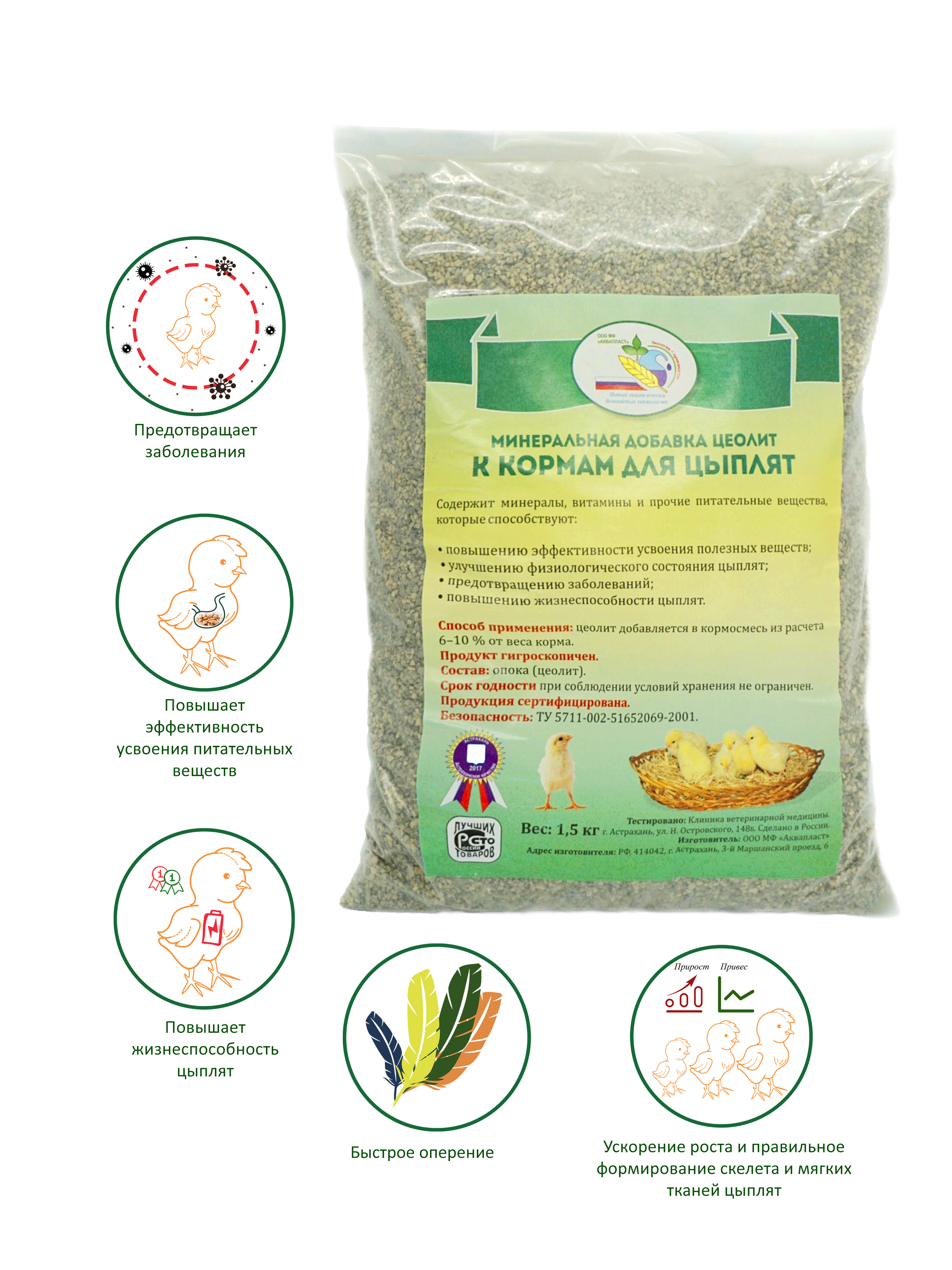 Минеральная добавка цеолит к кормам для цыплят 4500 гр. (3шт)