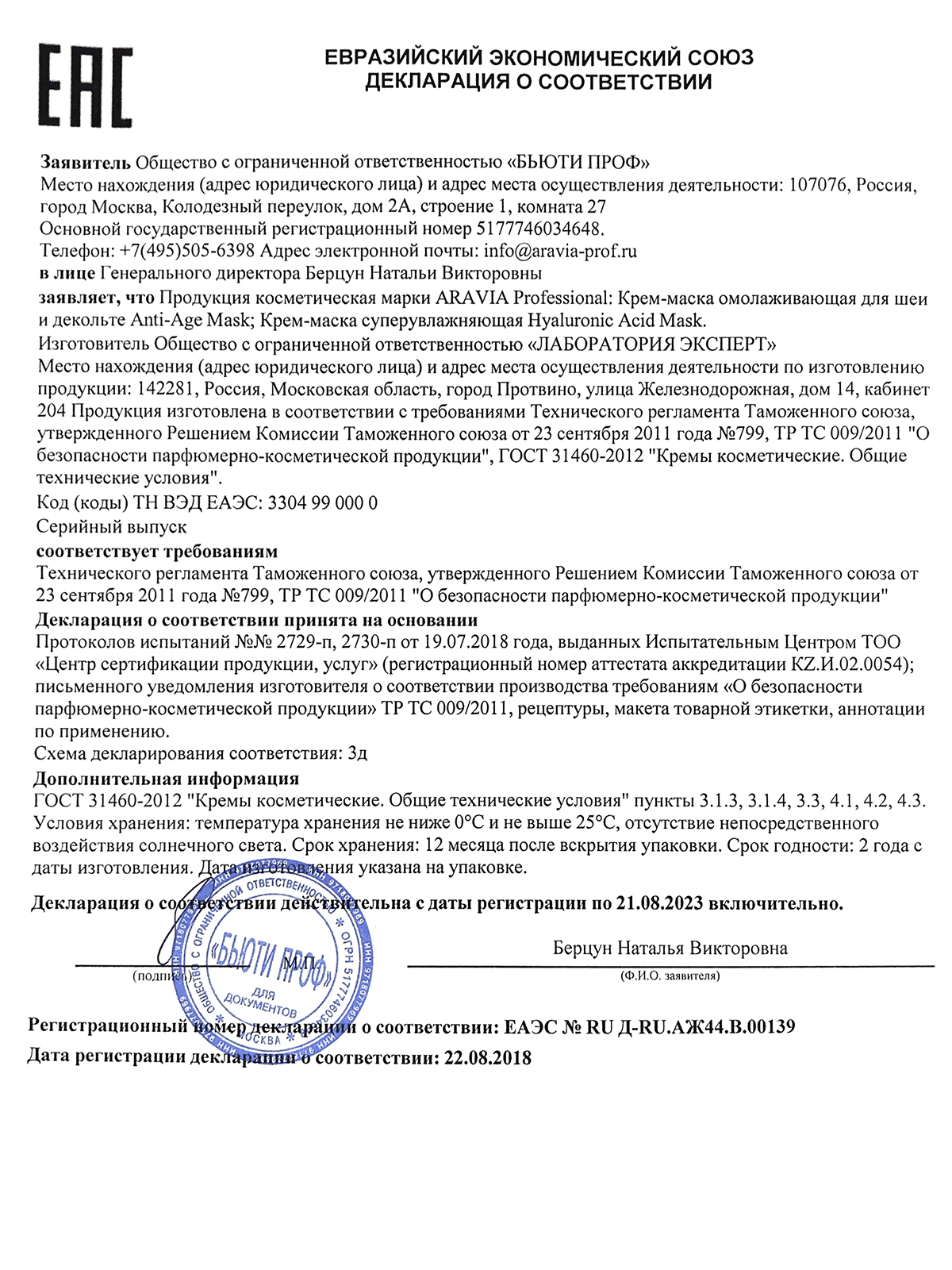 ARAVIA Professional Крем-маска омолаживающая Anti-Age Mask для шеи и декольте, 300 мл