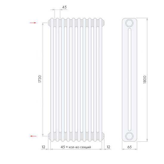 Секционный радиатор Сталь Arbonia 2180, 6 секц.