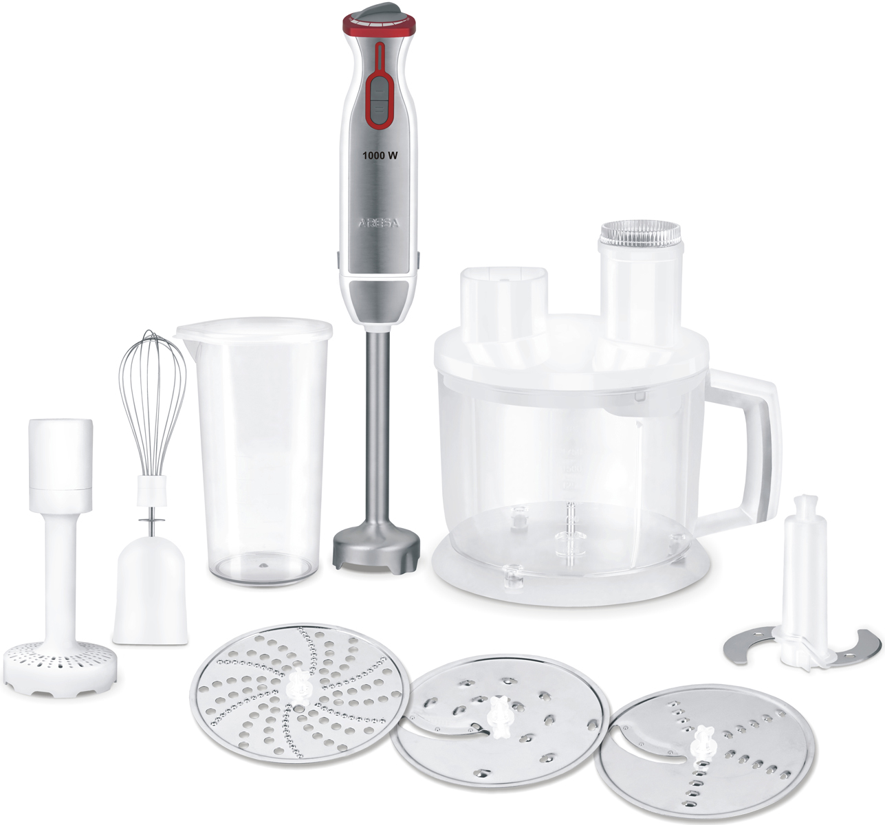 Кухонный комбайн ARESA AR-1702, 1000 Вт, терка для драников, плавная регулировка скорости