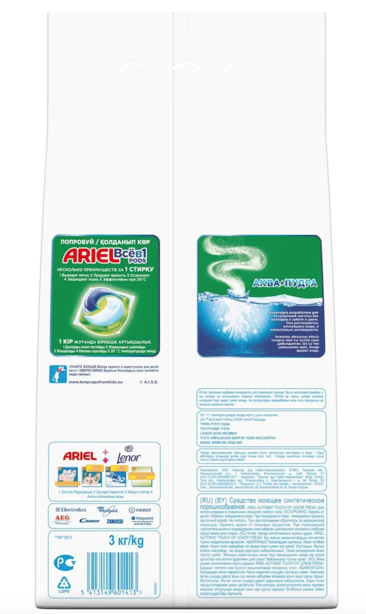 Стиральный порошок Ariel Automat Touch of Lenor fresh, 3кг