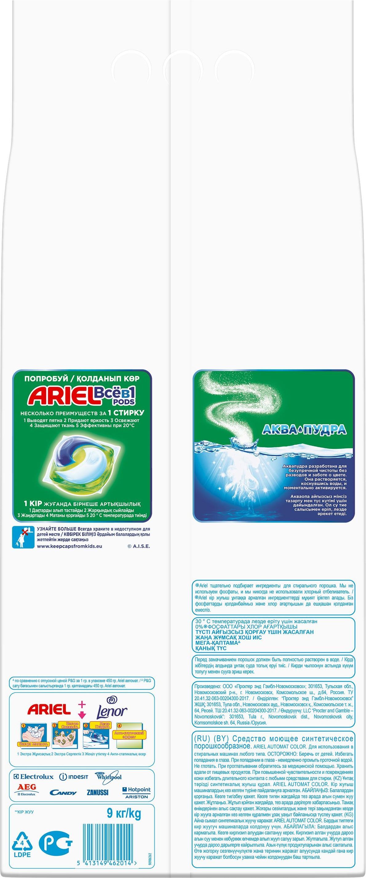 Стиральный порошок Ariel Автомат 2в1 Lenor эффект 30 стирок 4,5 кг.