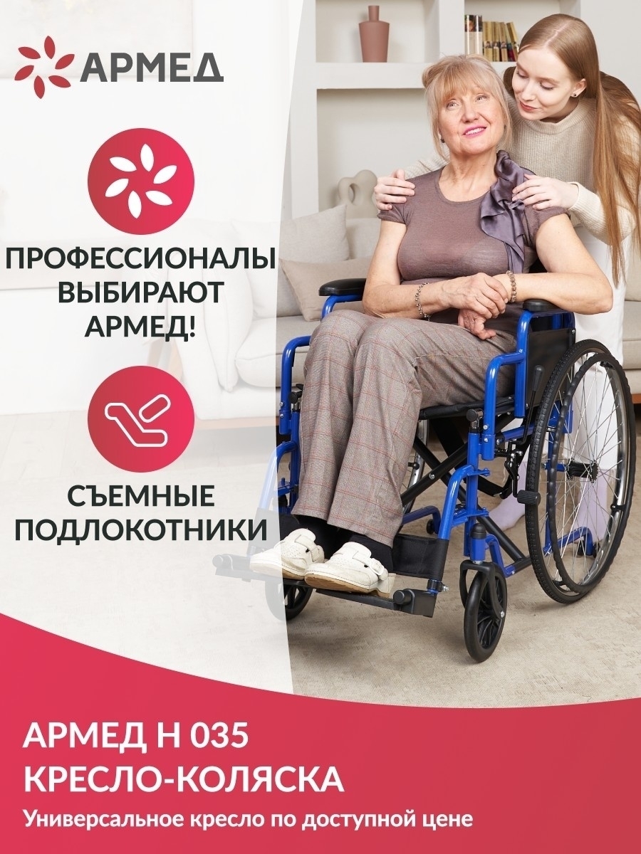 Кресло-коляска инвалидная складная Армед H 007 (ширина сиденья 46.5см) (пневмо колеса)