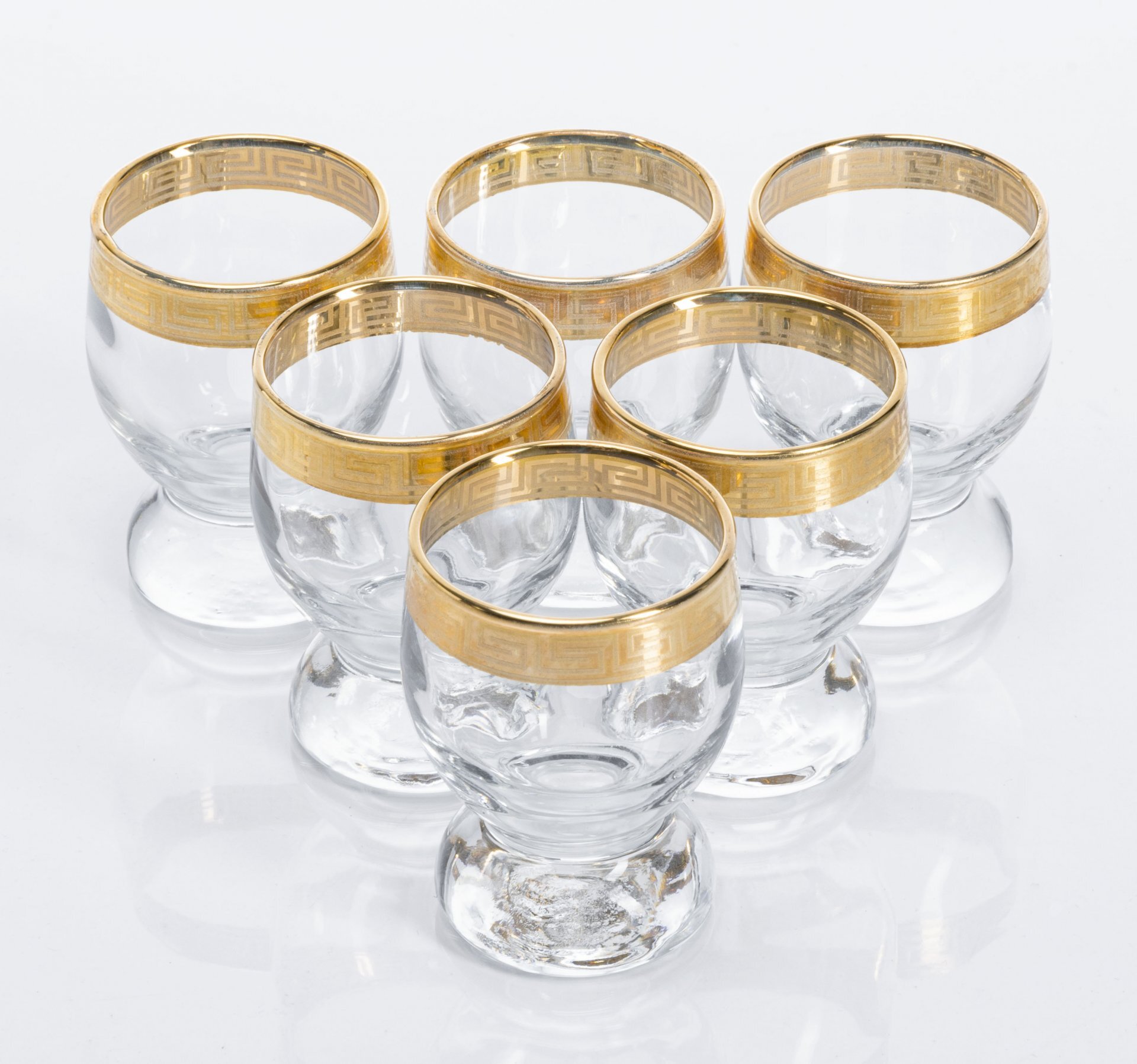 Набор из 6 стопок с орнаментальным декором по борту, стекло, золочение, Чехия, 1990-2010 гг.