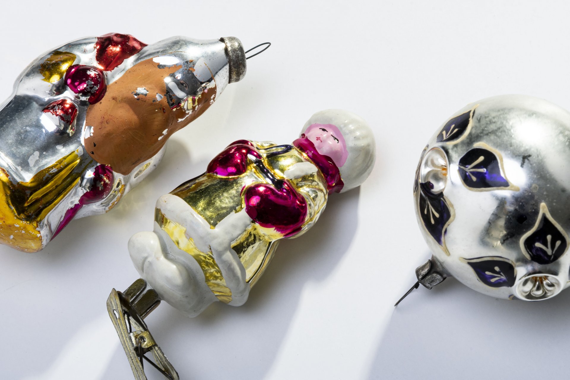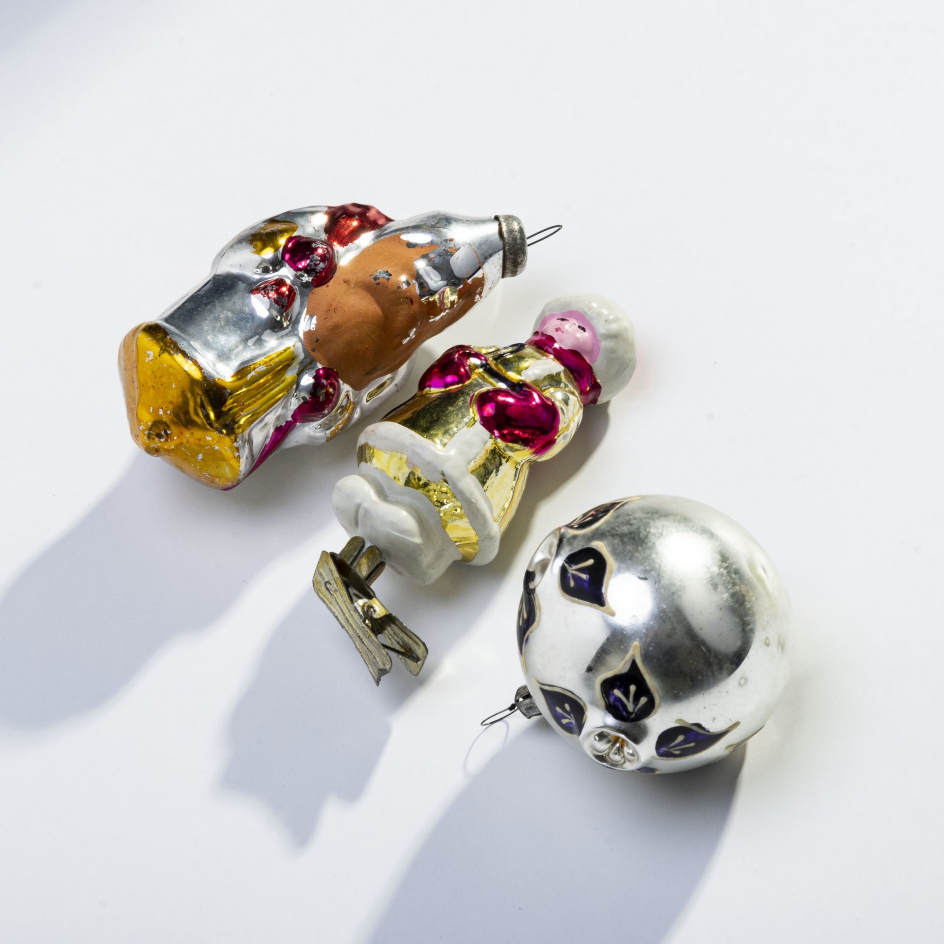 Набор из 3 елочных игрушек, стекло, роспись, СССР, 1950-1980 гг.