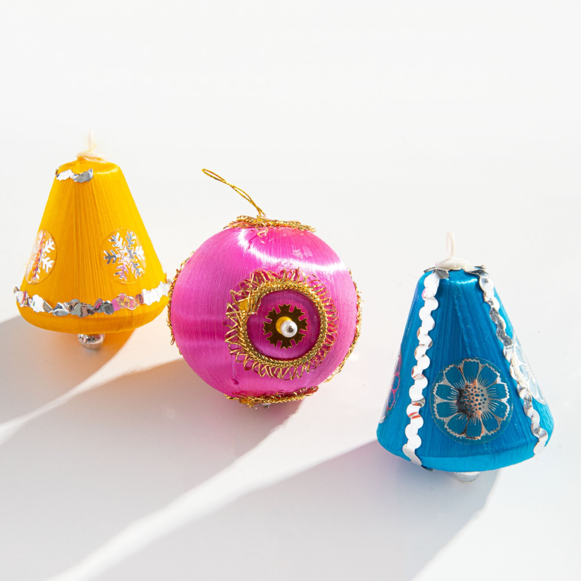 Набор елочных игрушек, пластик, шелковая нить, Китай, 1990-2015 гг.