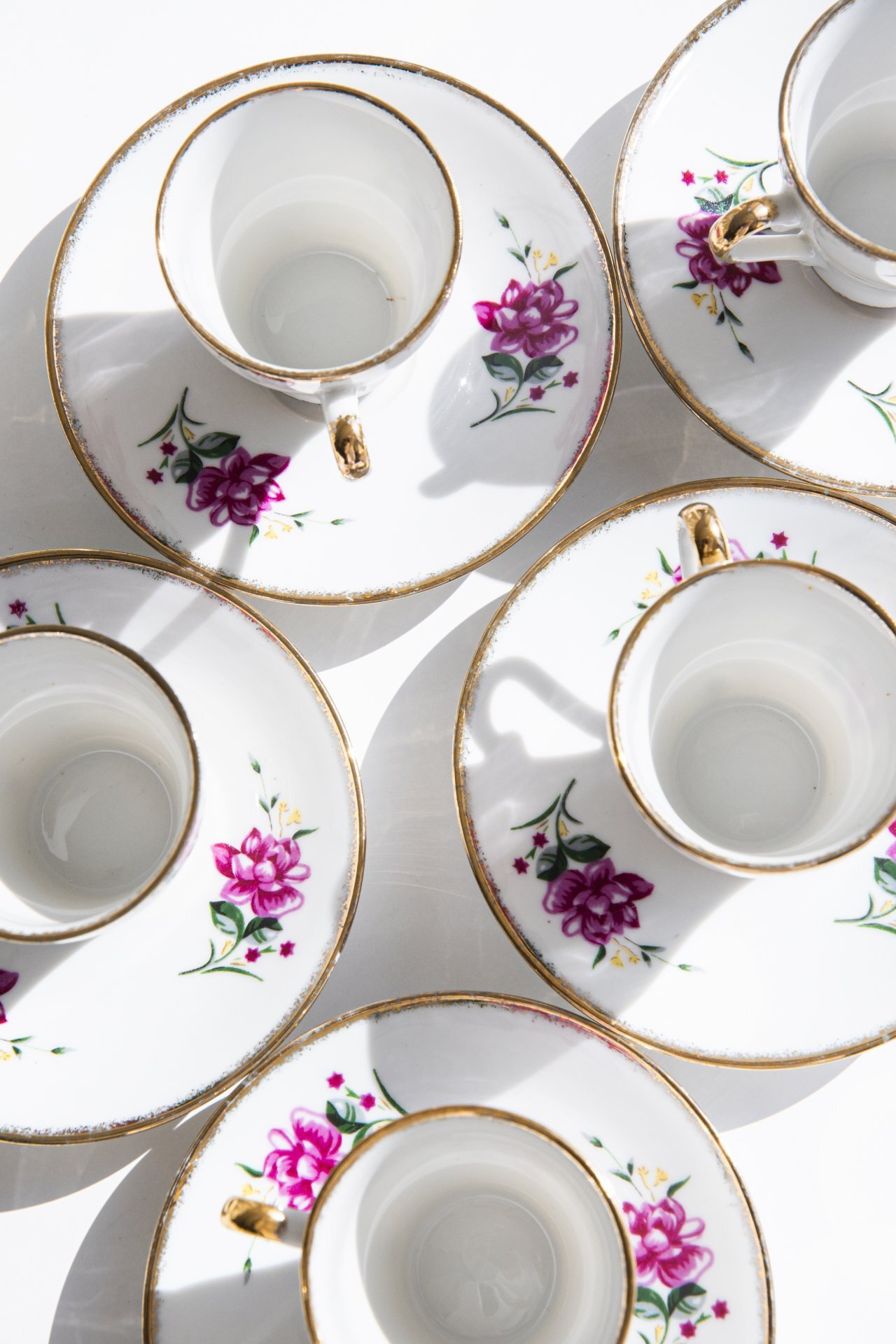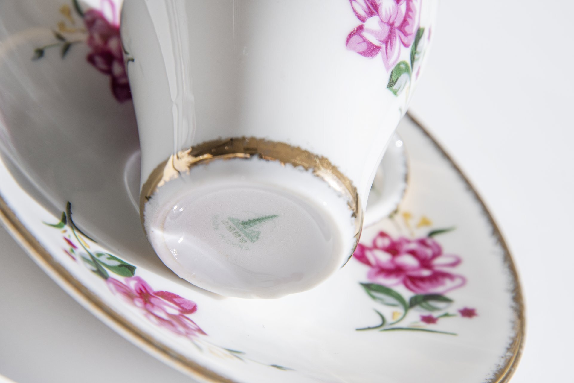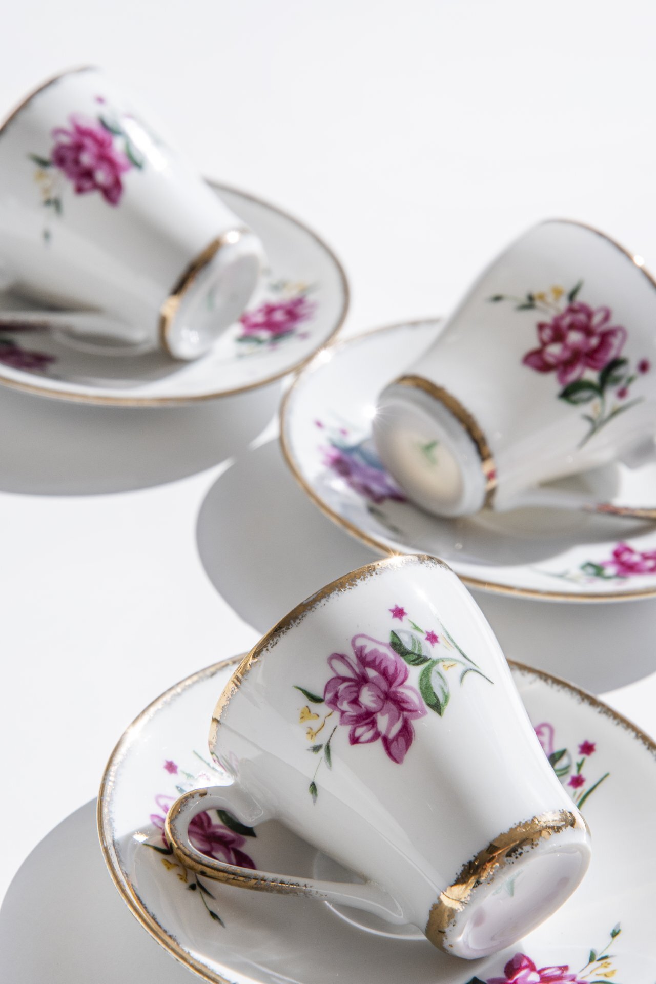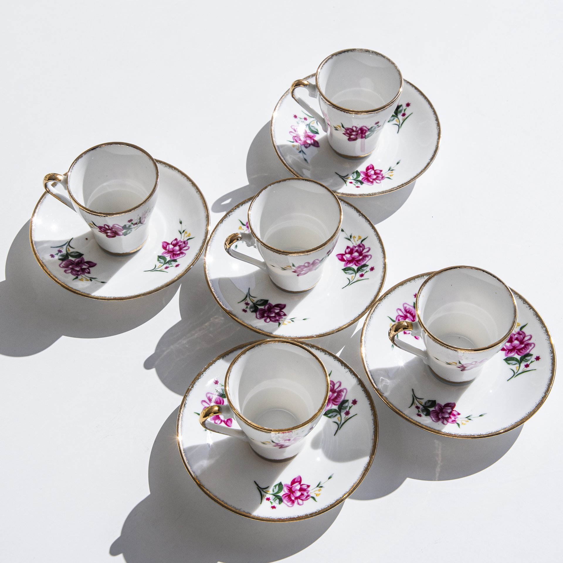 Набор кофейных пар с цветочным декором на пять персон, фарфор, деколь, Китай, 1970-1990 гг.