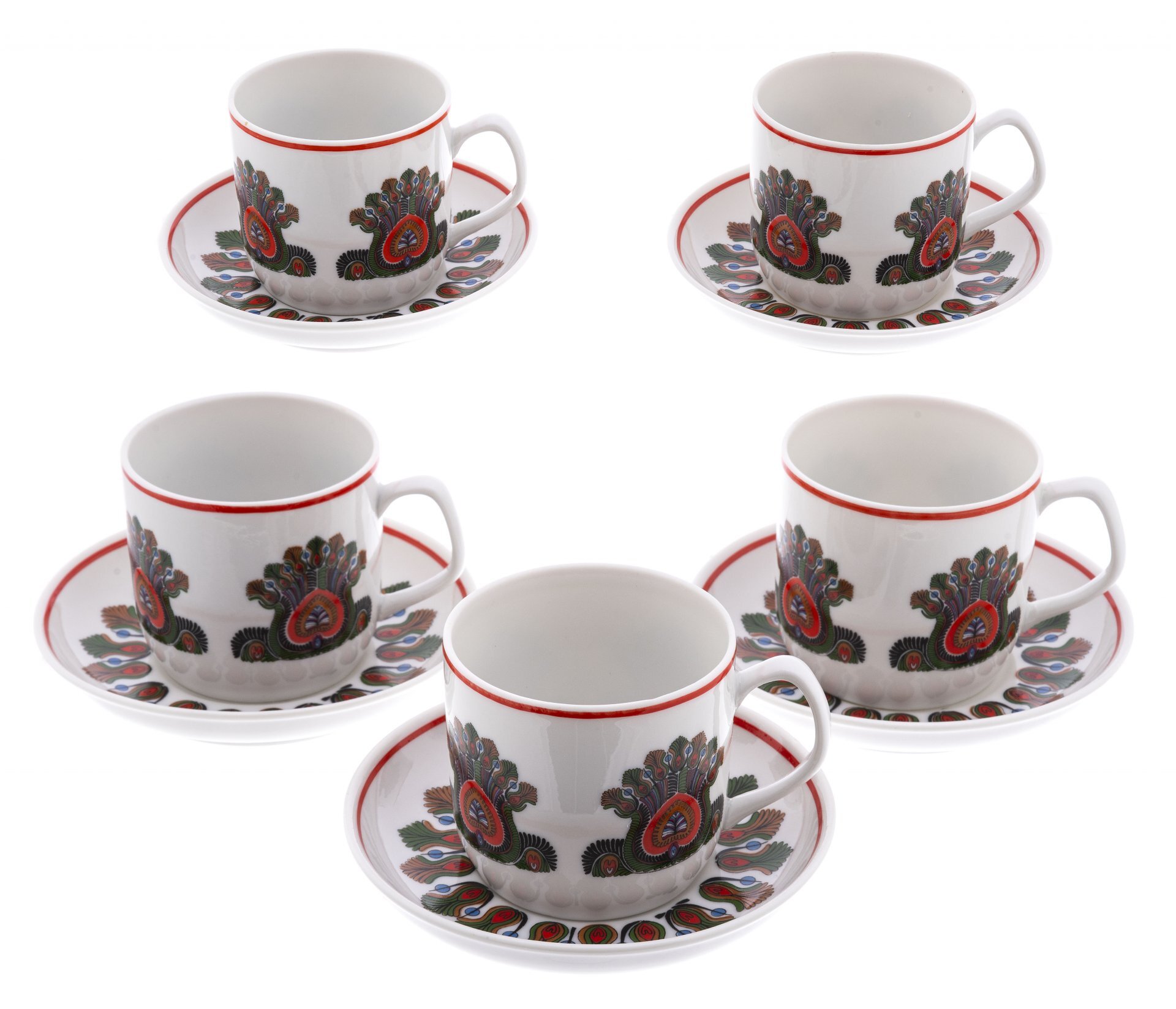 Набор из пяти кофейных пар, фарфор, роспись, мануфактура "Hollohaza", Венгрия, 1955-1983 гг.