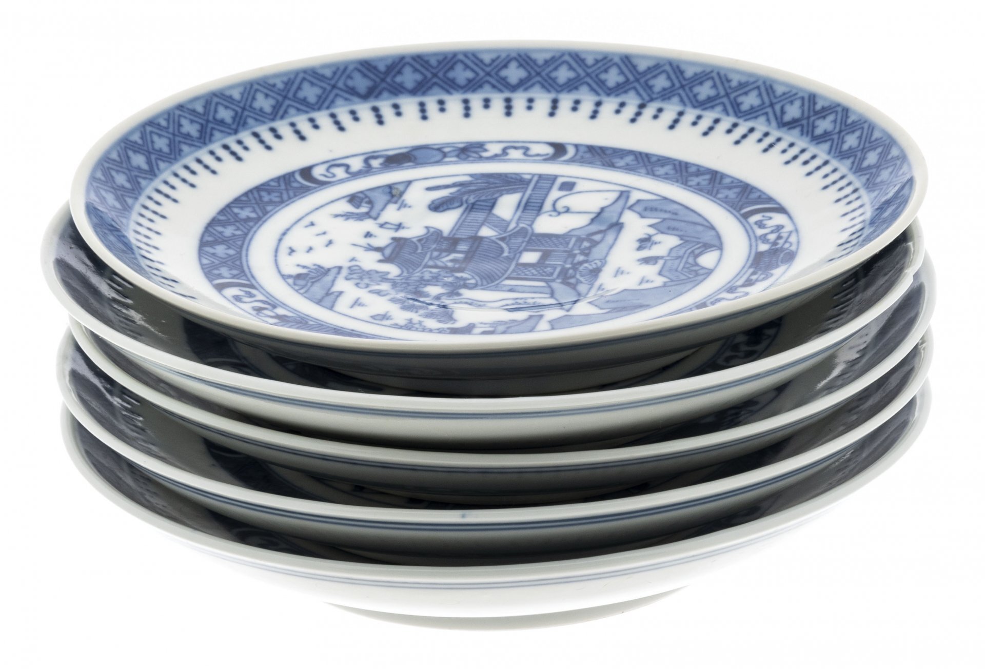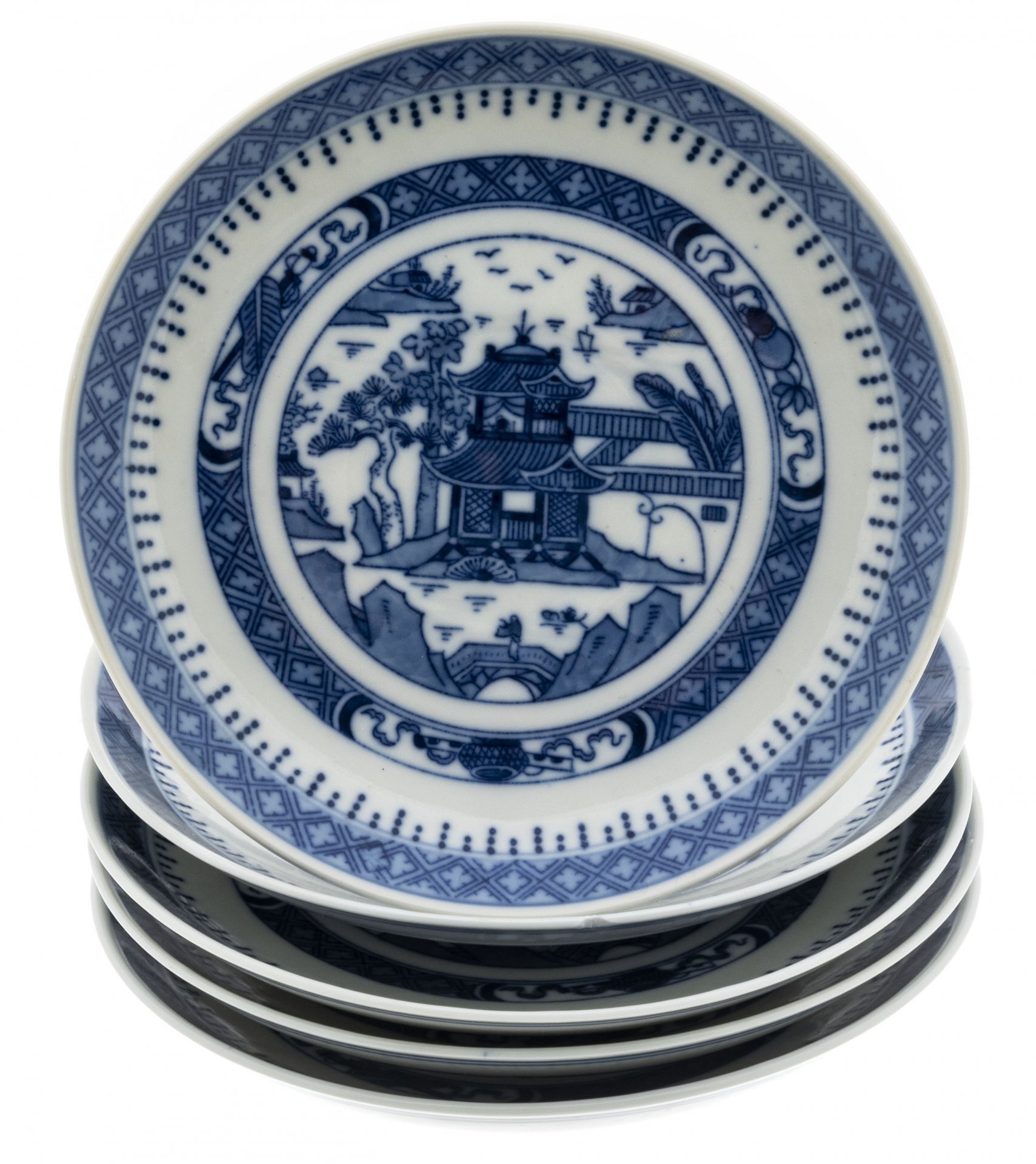 Набор из 5 блюдец, декорированных изображением пейзажа, фарфор, деколь, Китай, 1980-1990 гг.