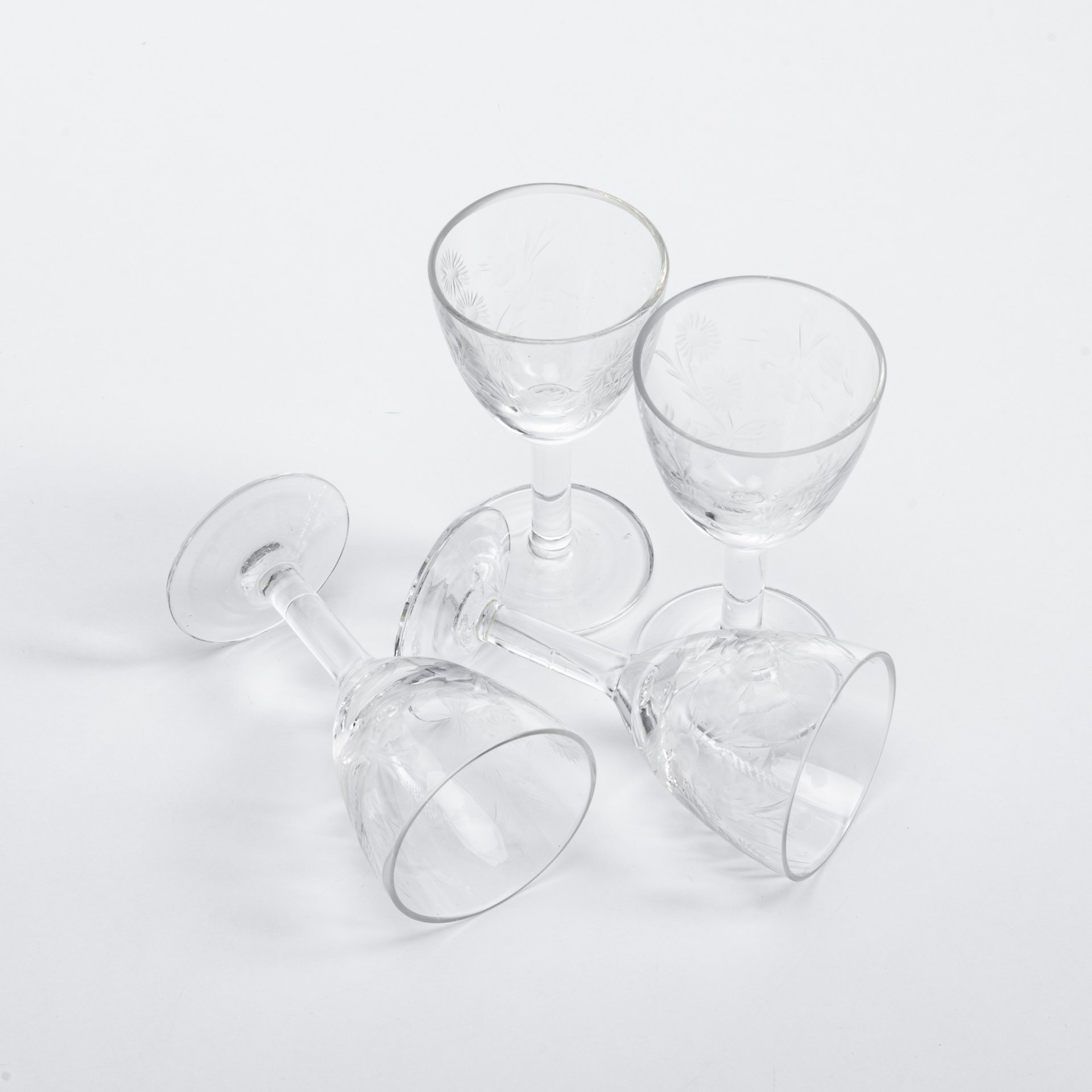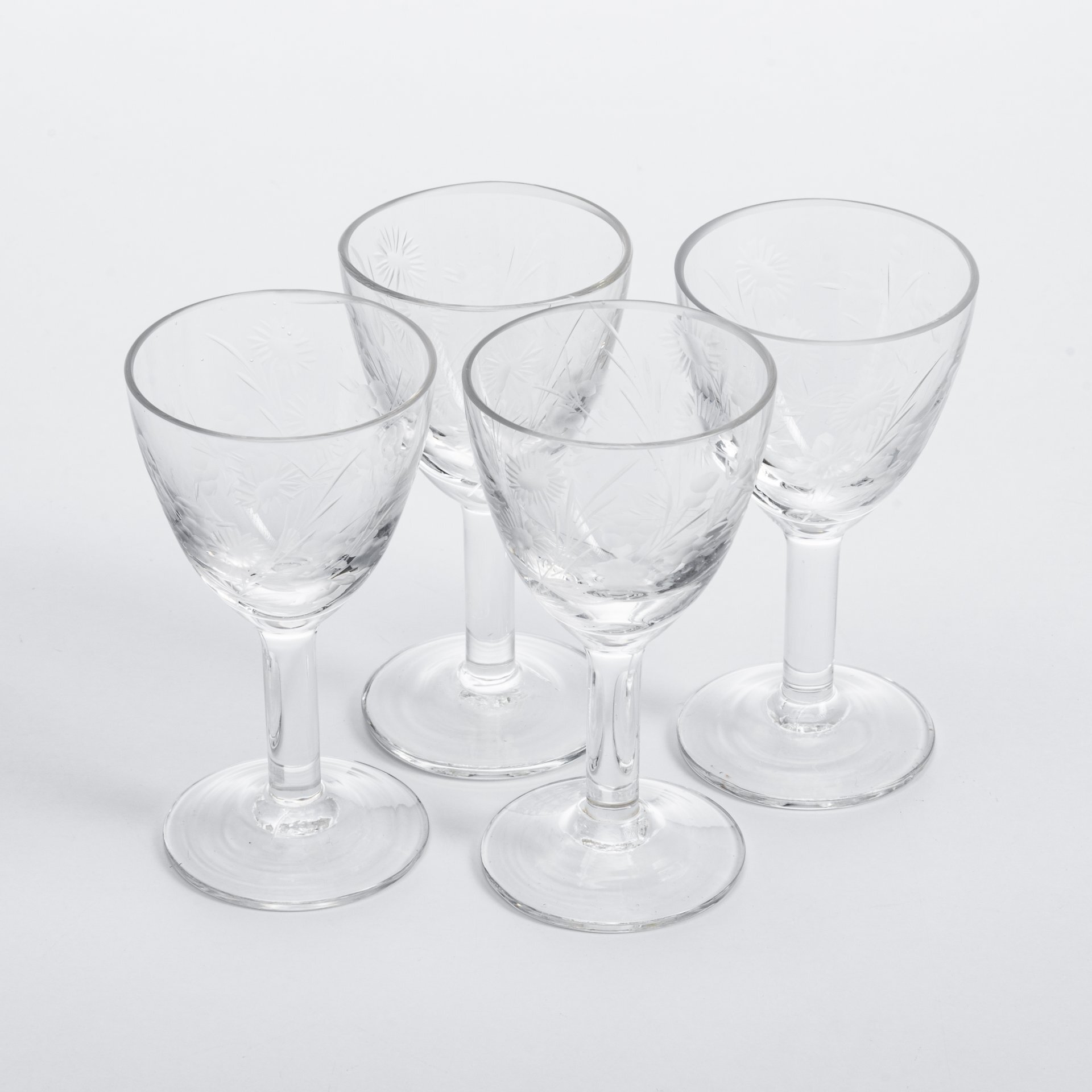 Набор из 4 рюмок, декорированных алмазной гравировкой цветов, стекло, СССР, 1970-1990 гг.