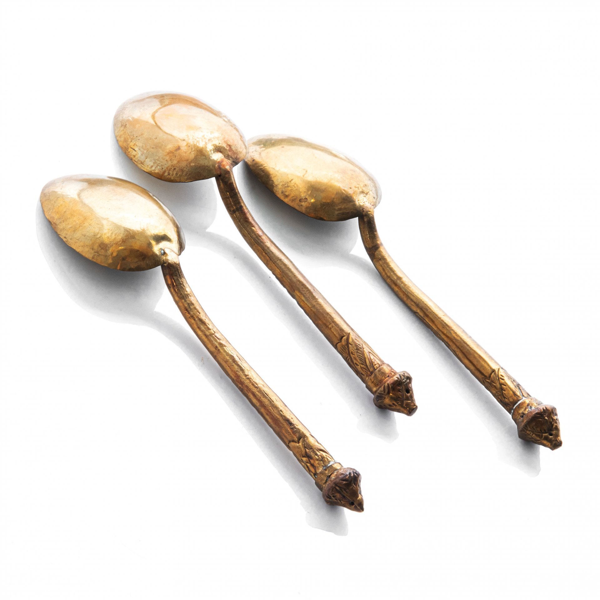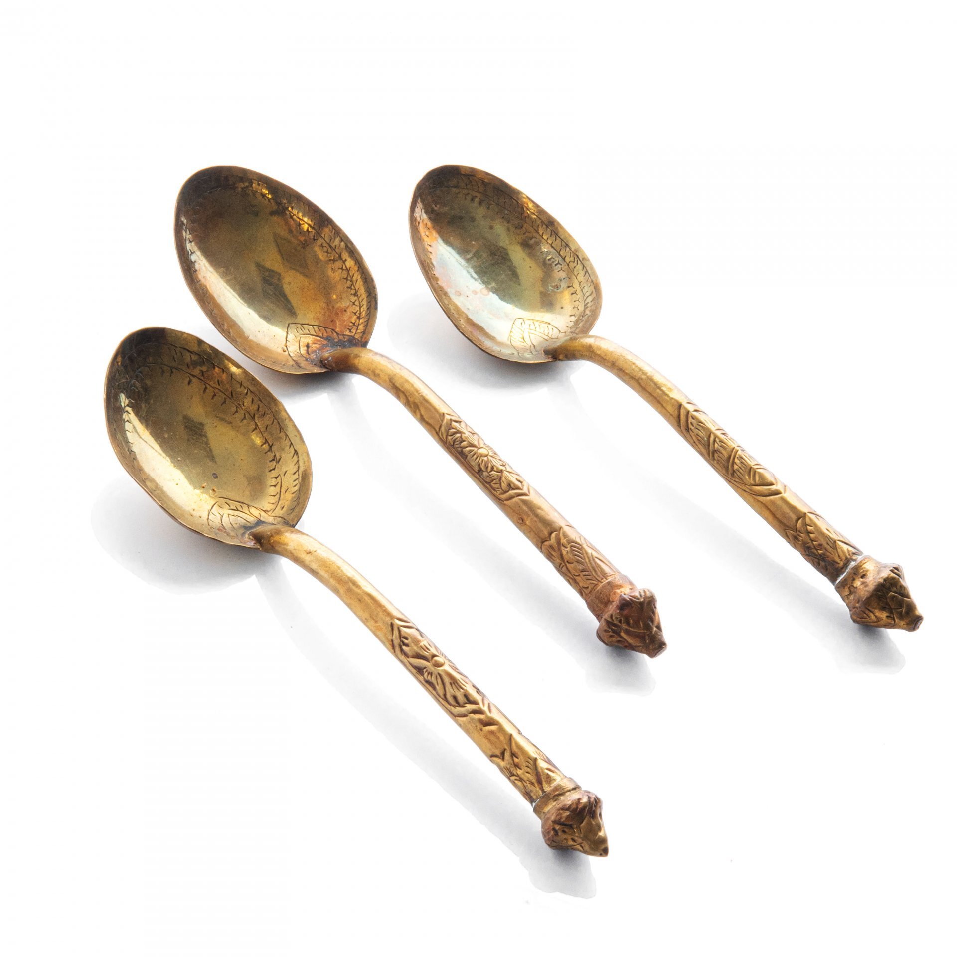 Набор из трех сервировочных ложек с орнаментальным декором, сплав металла, Азия, 1980-2000 гг.