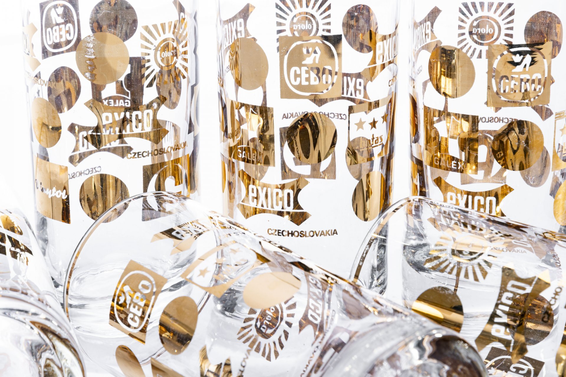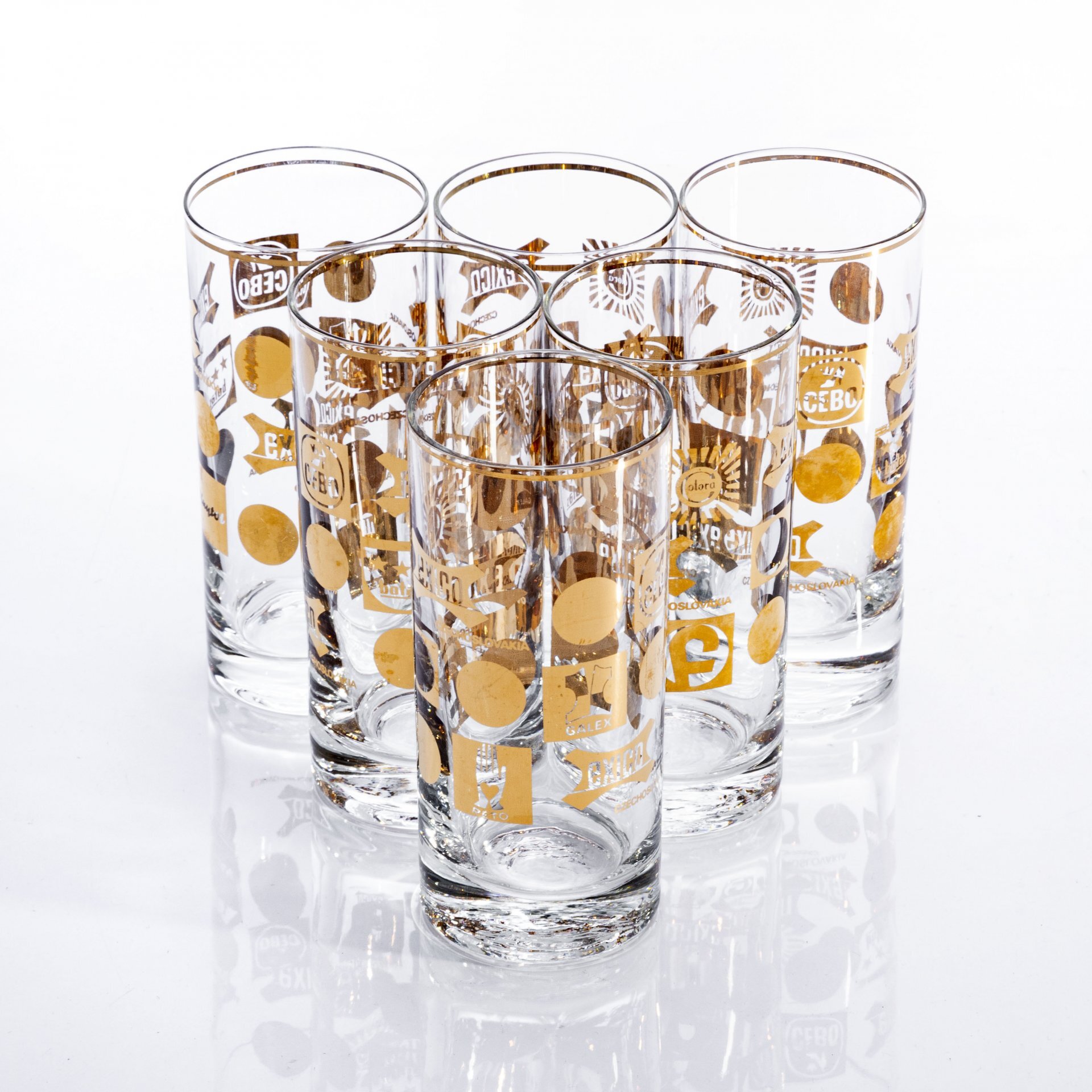 Набор из 6 стаканов с логотипами компаний, стекло, золочение, Богемия, Чехословакия, 1990-2000 гг.