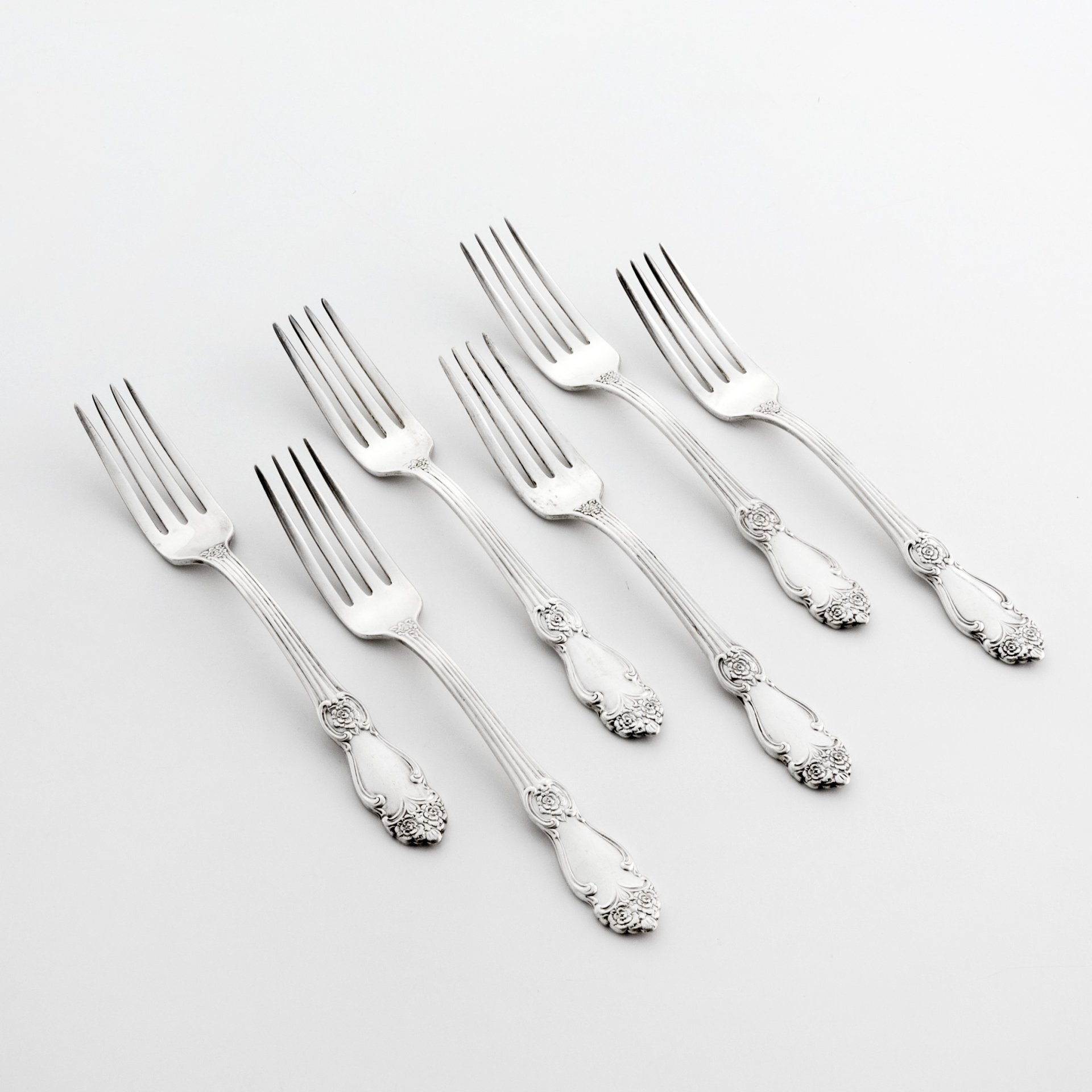 Набор из 6 столовых вилок "Серебряная роза", мельхиор, СССР, 1970-1990 гг.