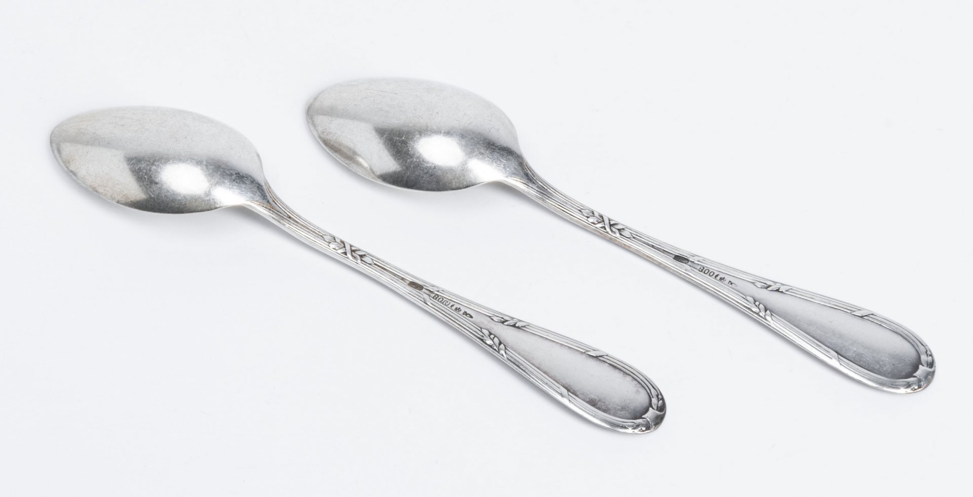 Набор из двух чайных ложек лаконичной формы, серебро 800 пр., Германия, 1910-1940 гг.