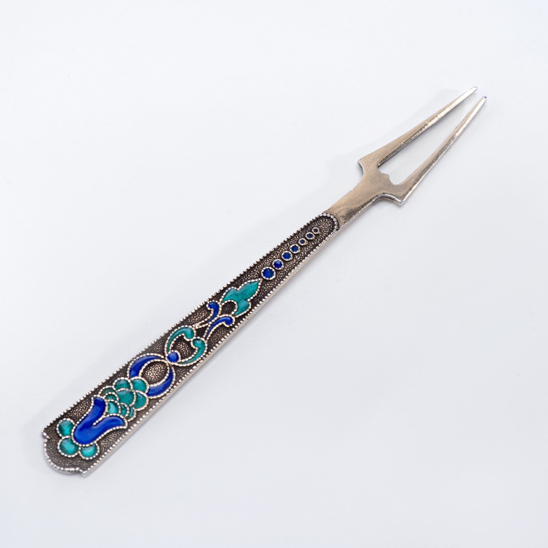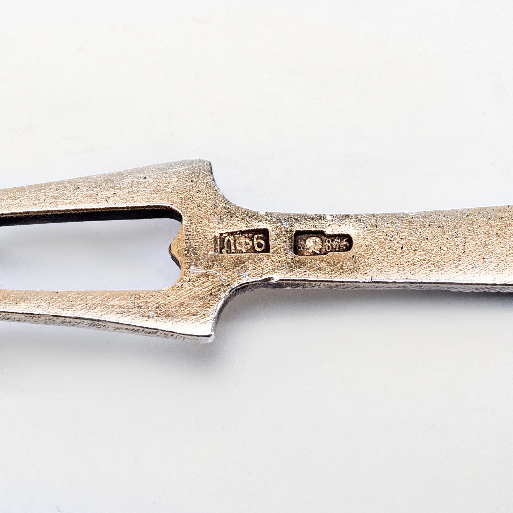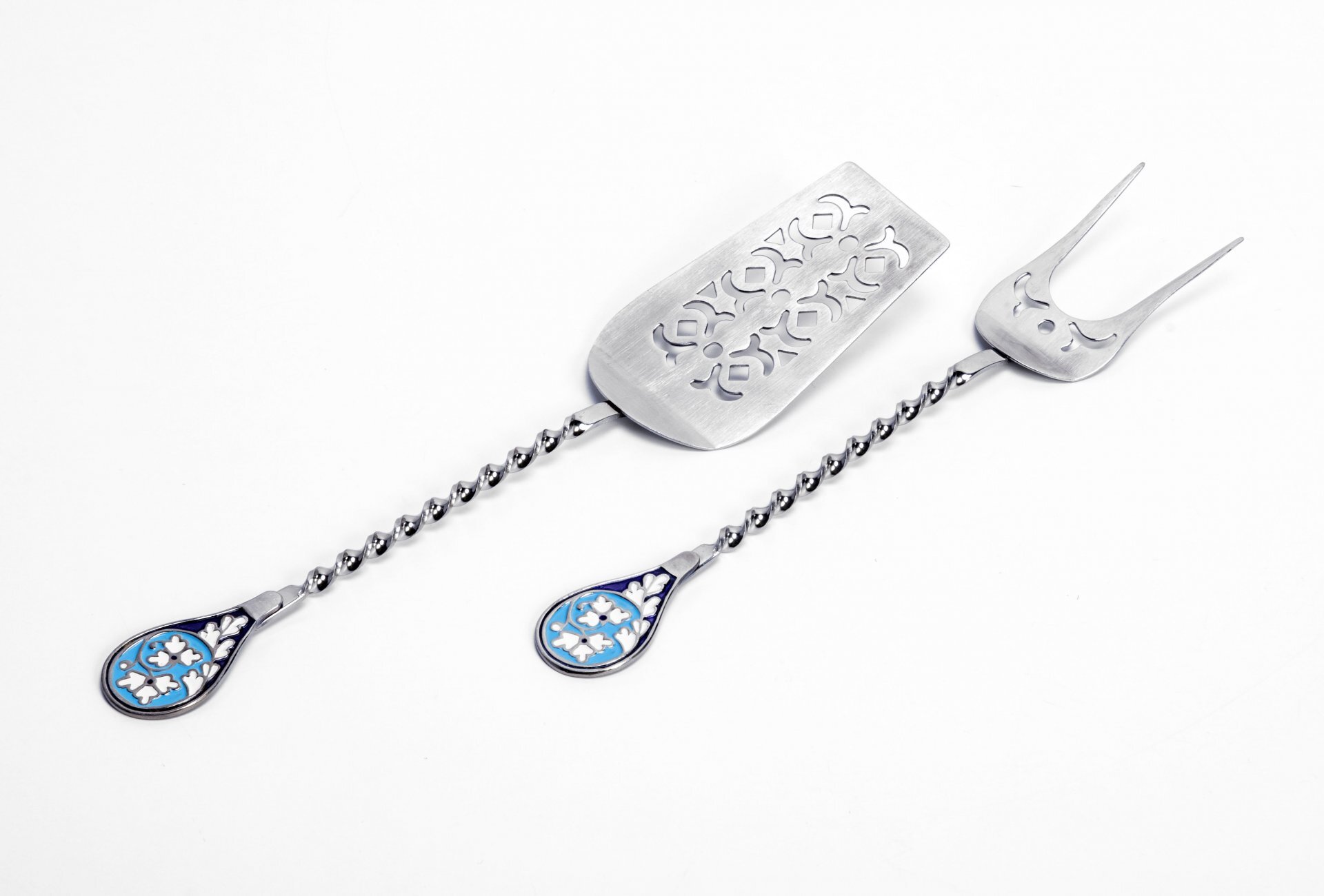 Набор сервировочный с прорезным декором (лопатка и вилка), сплав металла, эмаль, СССР, 1970-1990 гг.