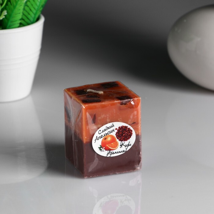Свеча- куб "Апельсин- кофе" ароматическая, 5х6 см
