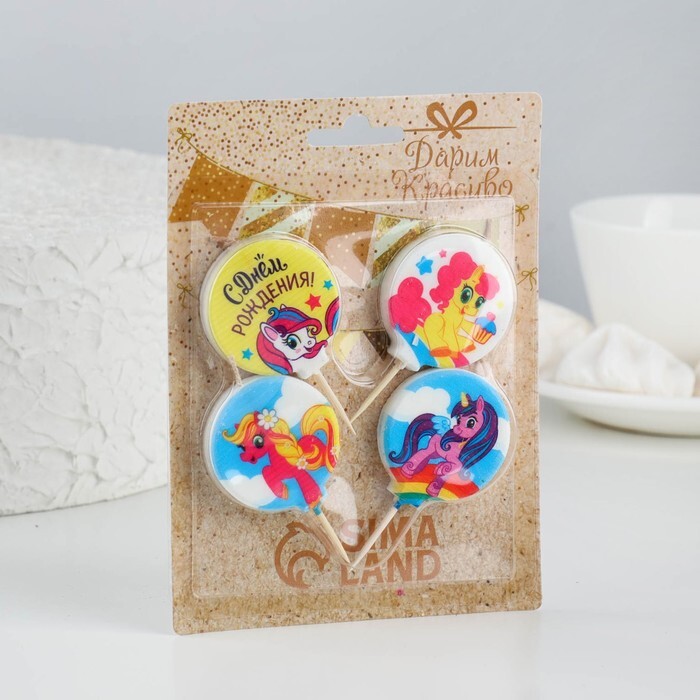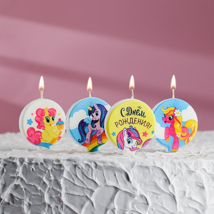 Набор свечей в торт "Пони", размер 1 свечи 4х4,4см, 4 шт