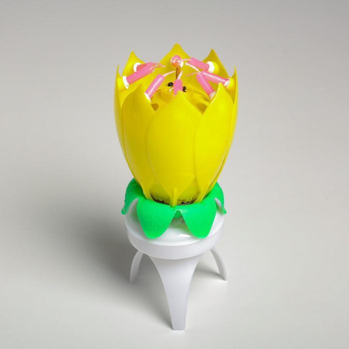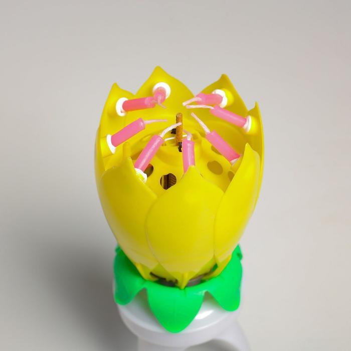 Свеча для торта музыкальная "Тюльпан", крутящаяся, жёлтая, 14,5х6 см