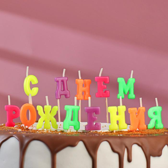 Свеча для торта " С Днём Рождения, буквы" на шпажках