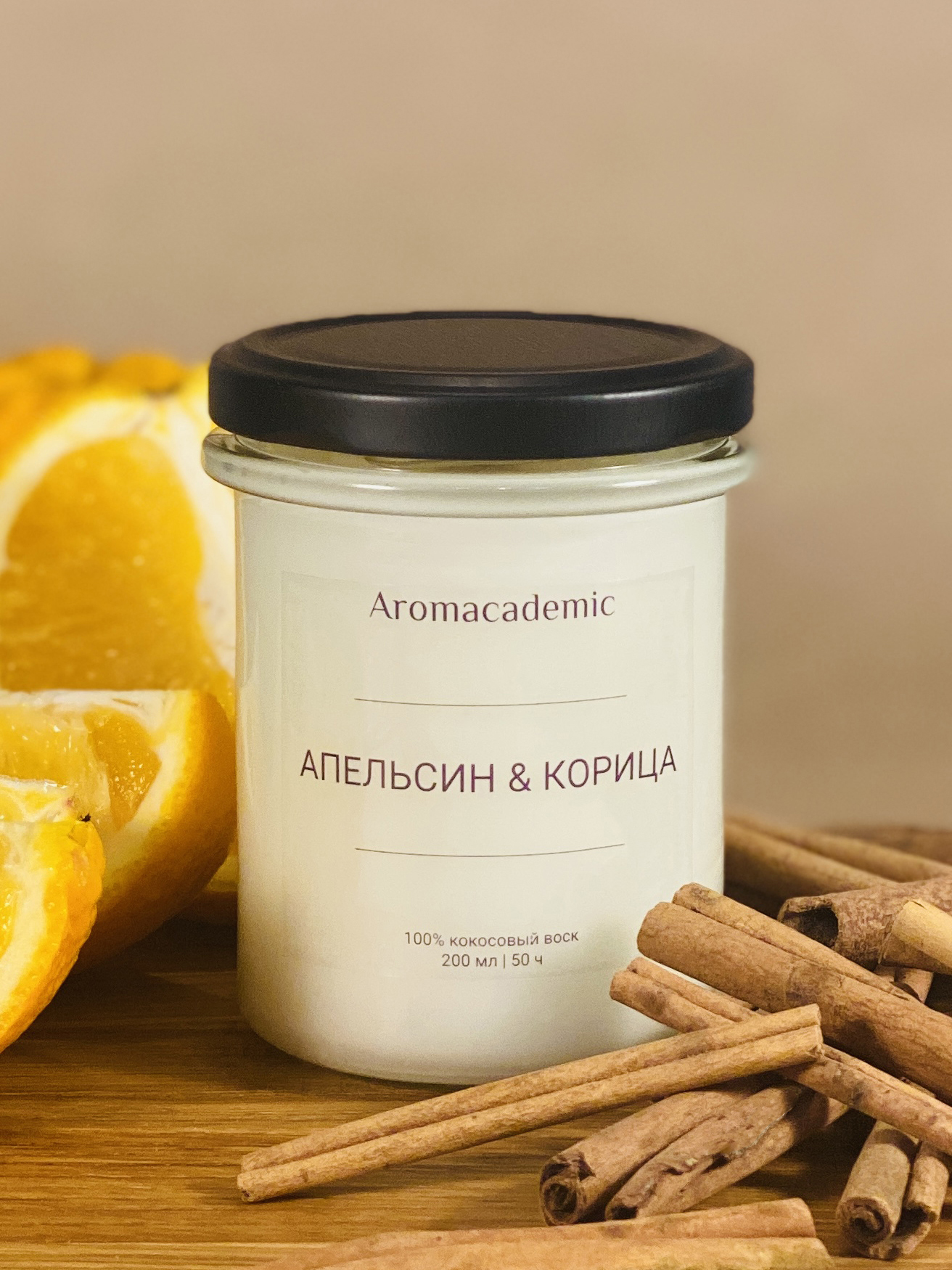 Свеча ароматическая Aromacademic "Апельсин и корица", 9 см х 6 см, 1 шт