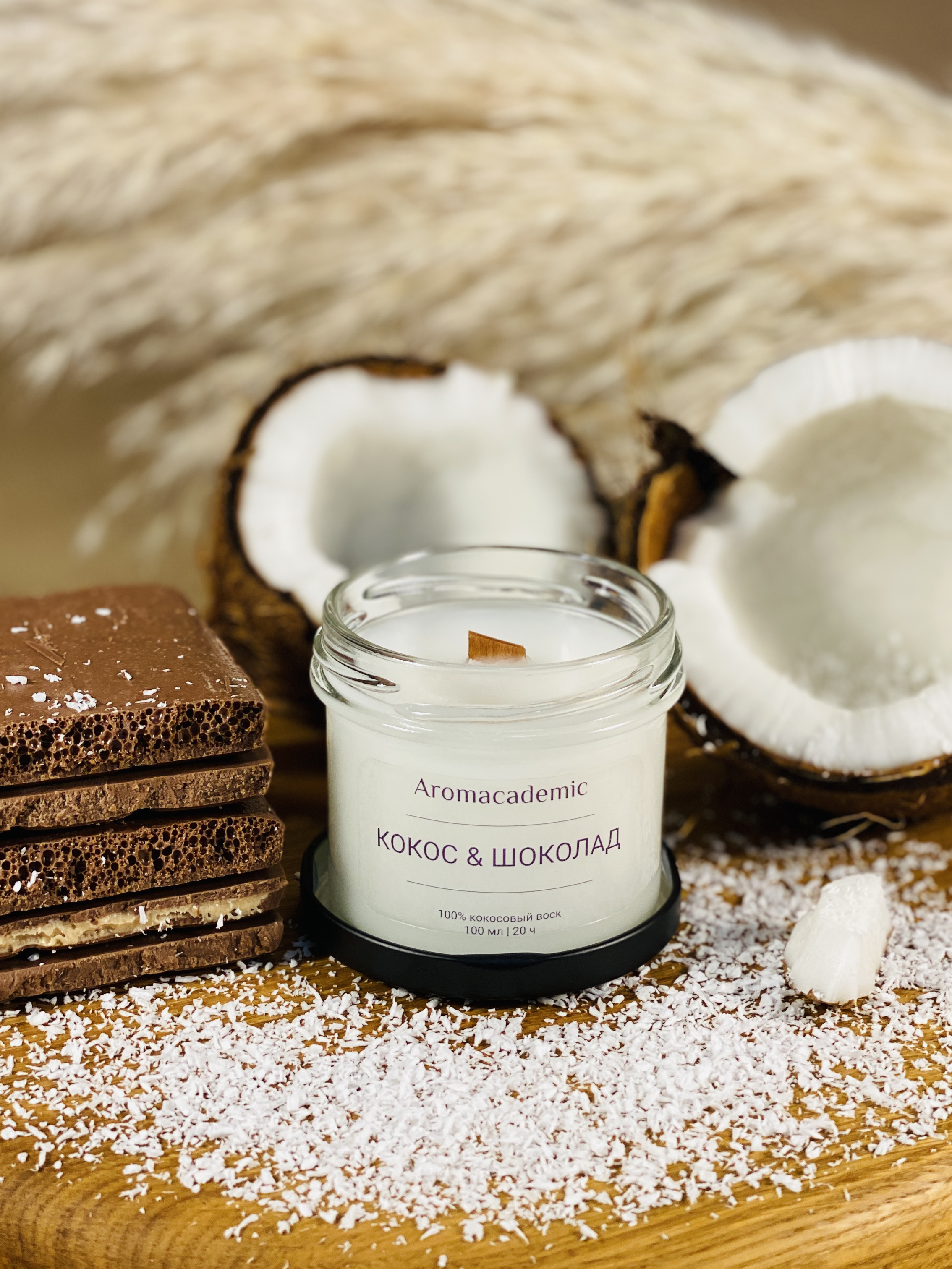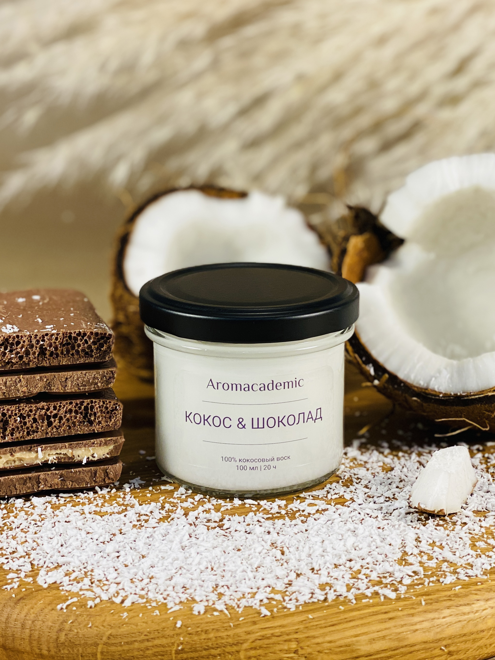 Свеча ароматическая Aromacademic "Кокос и шоколад", 6 см х 6 см, 1 шт