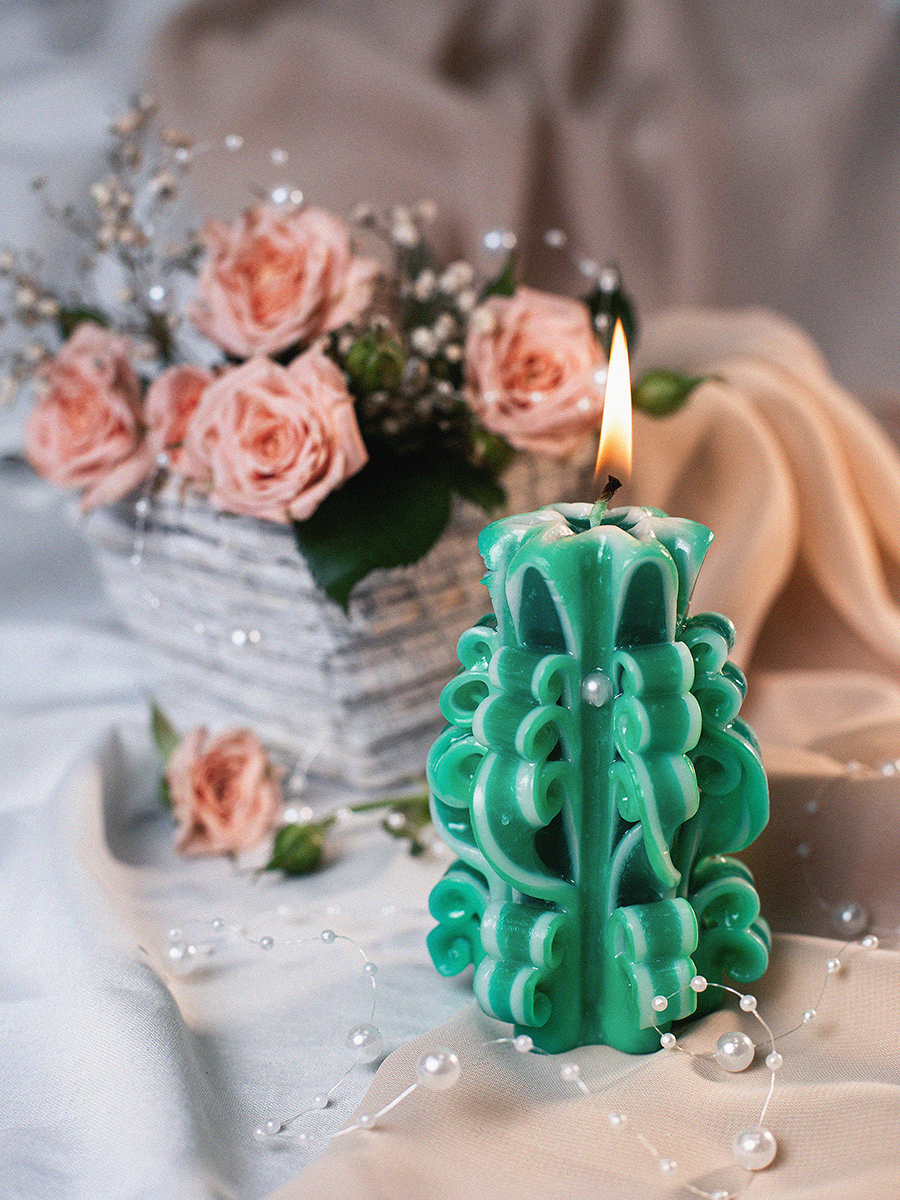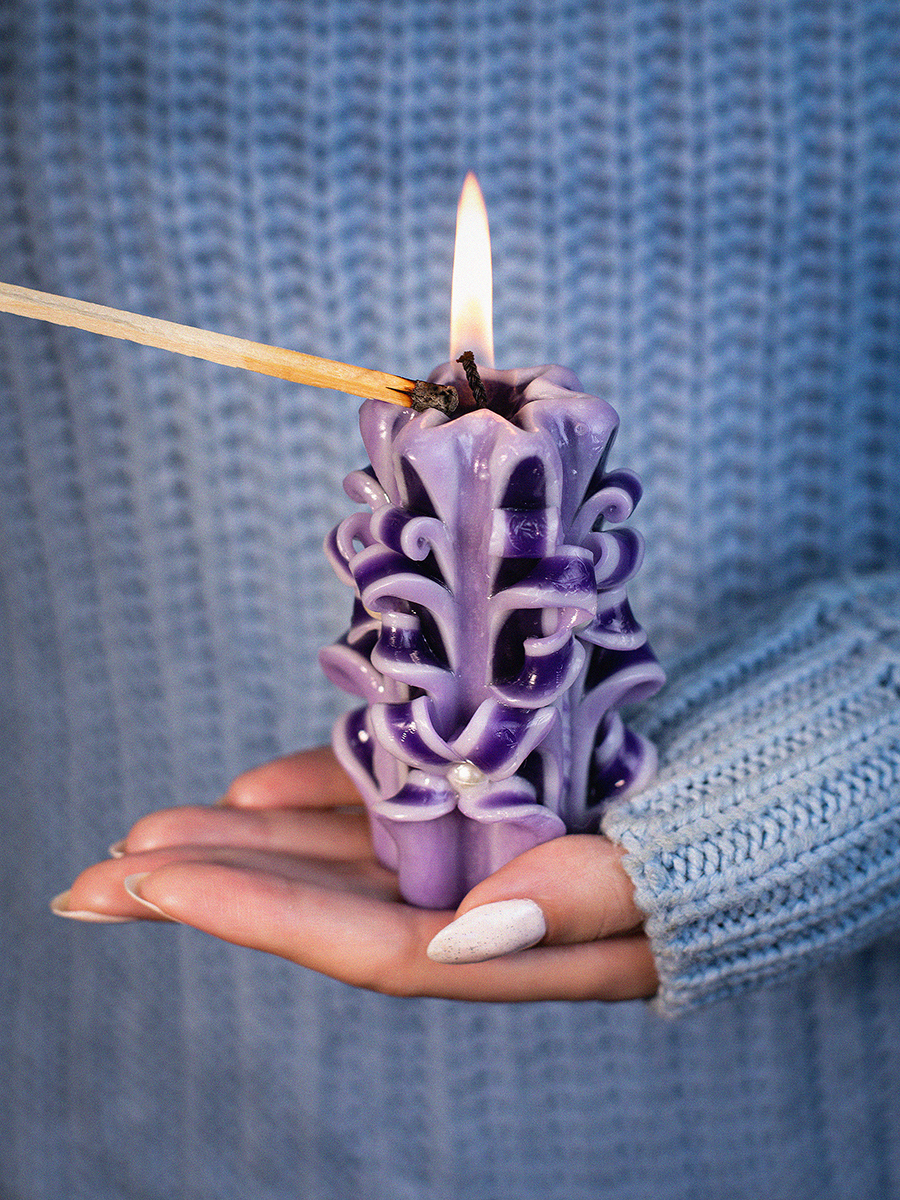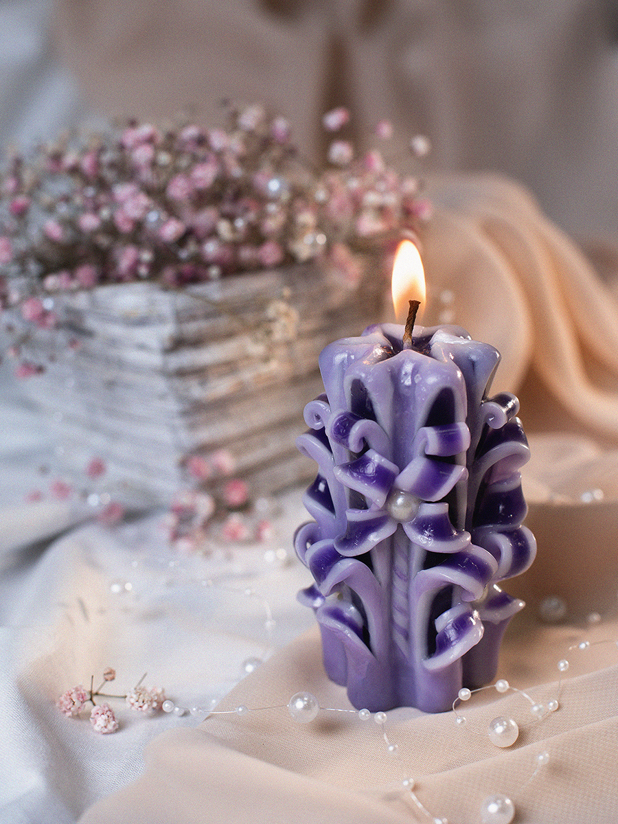Aromatte / Свеча-резная ручной работы LACE VIOLET (кружева фиалки), h 9 см