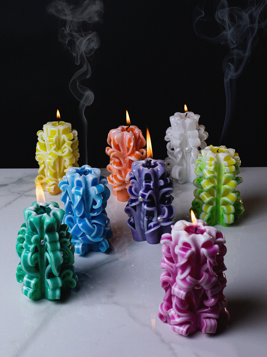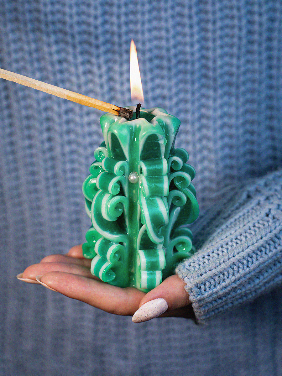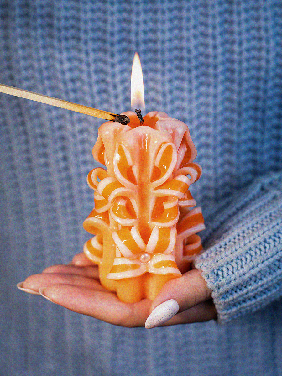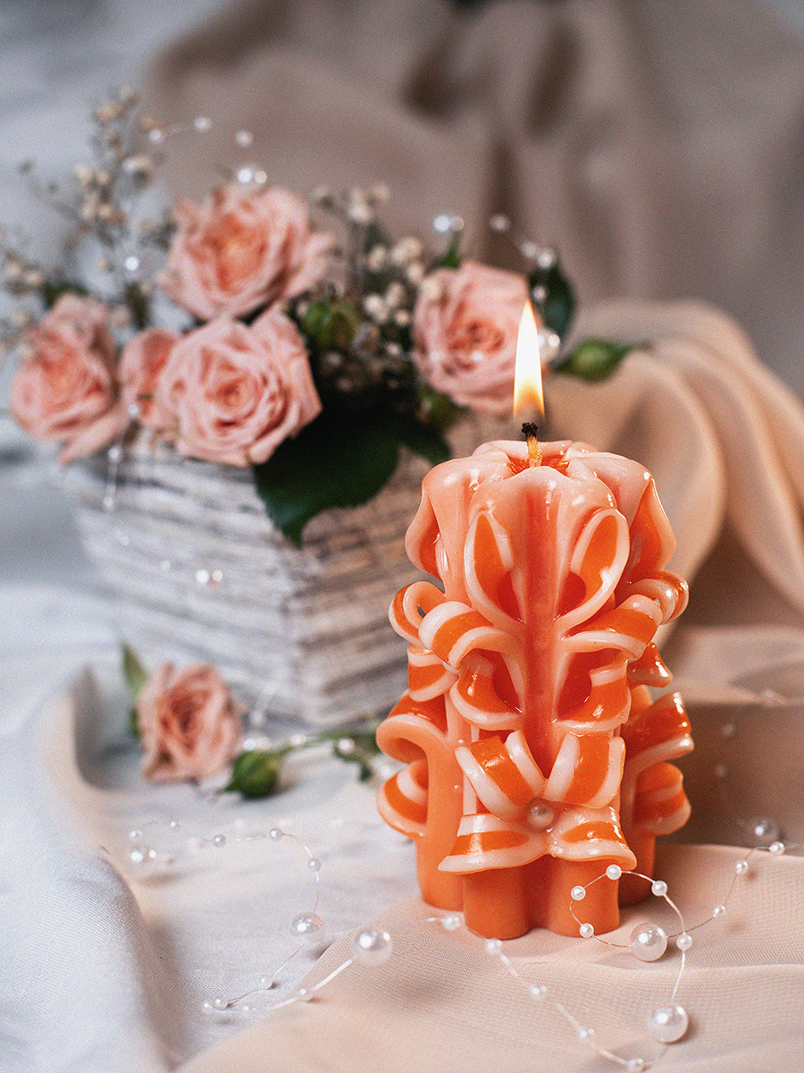 Aromatte / Свеча-резная ручной работы LACE VIOLET (кружева фиалки), h 9 см