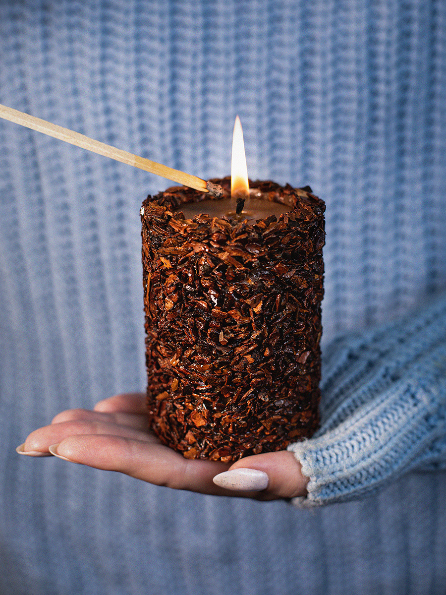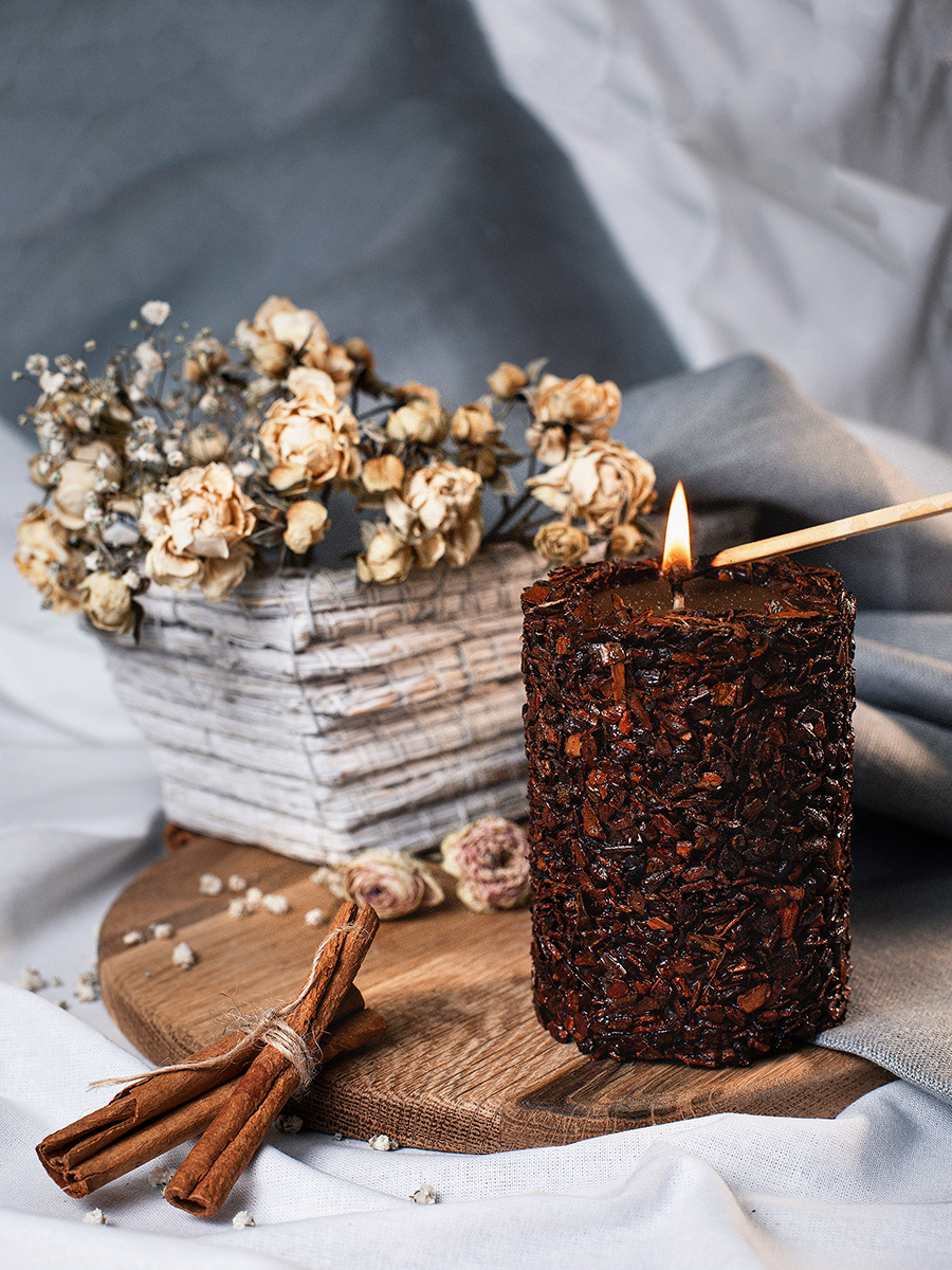 Aromatte / Свеча-эко ручной работы SUCCESS с дробленной корицей и эфирным маслом корица, d 8 h 10 см