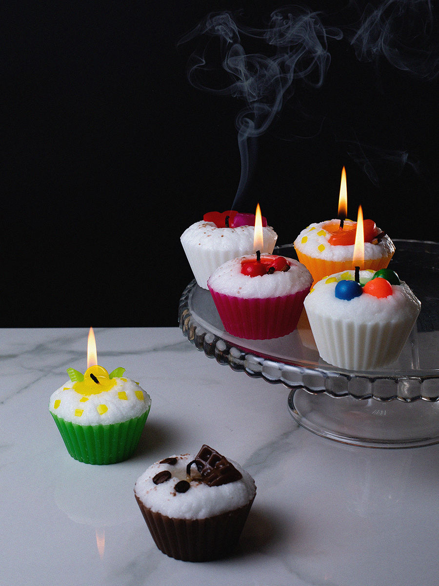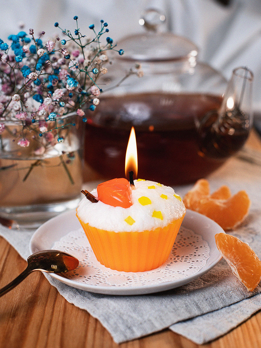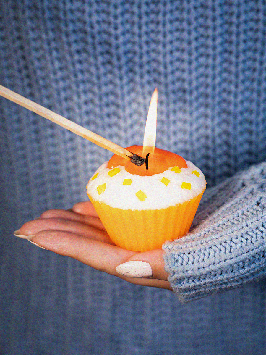 Aromatte / Свеча "пирожное" ручной работы ORANGE , d8 h6 см