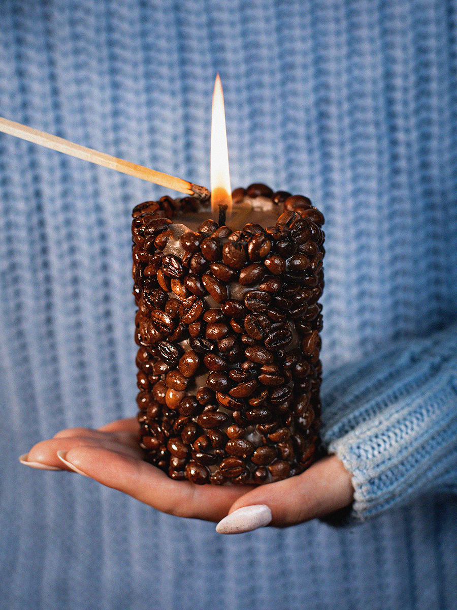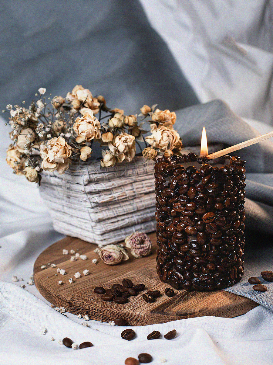 Aromatte / Свеча-эко ручной работы COFFEE с зернами и ароматом кофе, d 8 h 10 см