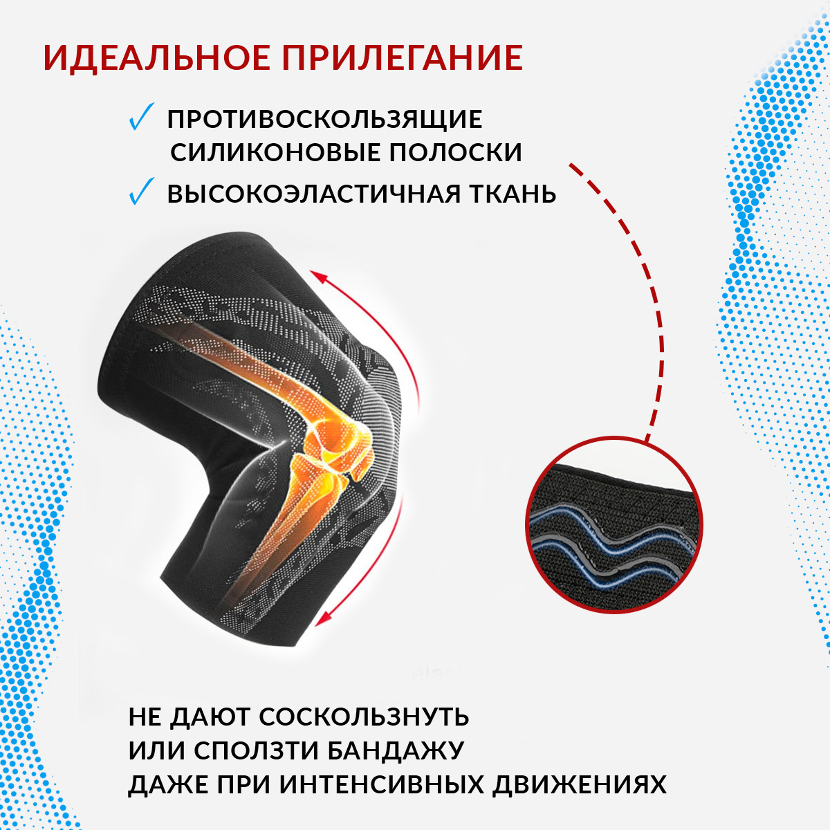 Бандаж коленный, фиксирующий, компрессионный, с силиконовым кольцом, фиксатор сустава, суппорт 1 шт