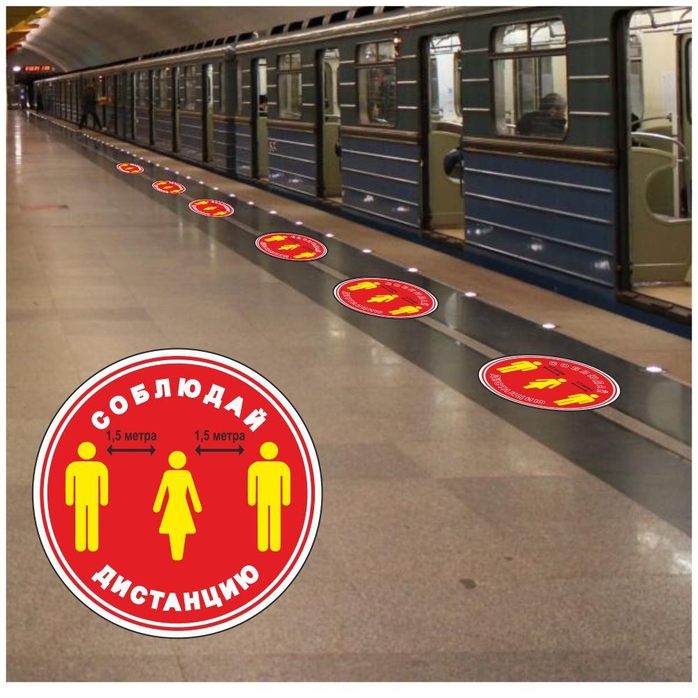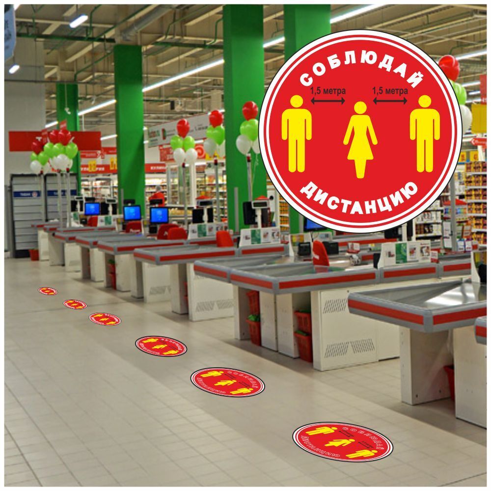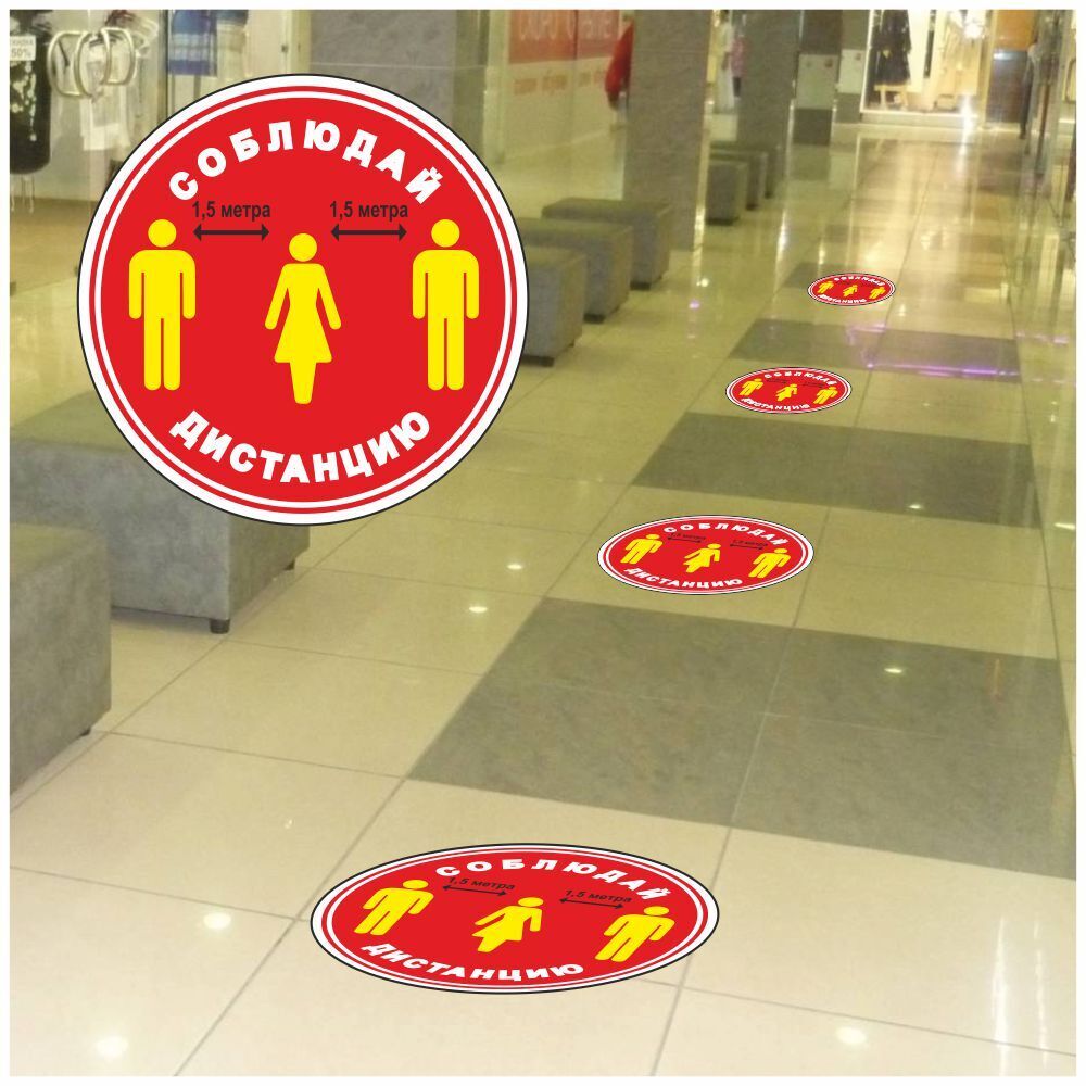 Наклейка 200*200 "Соблюдай дистанцию 1,5 метра (красная)", ламинация, Арт рэйсинг