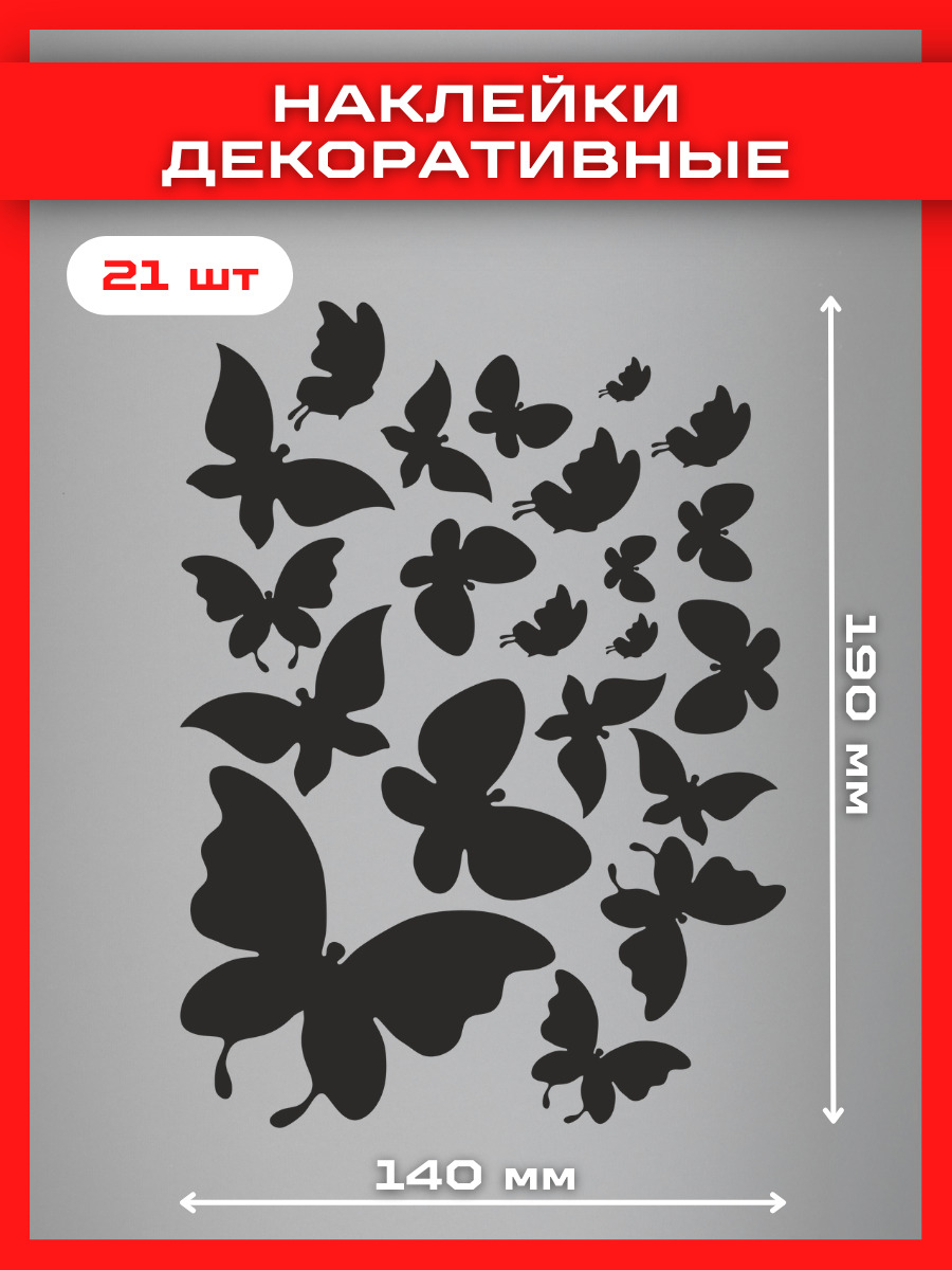 Наклейка декоративная БАБОЧКИ 21 шт черный цвет