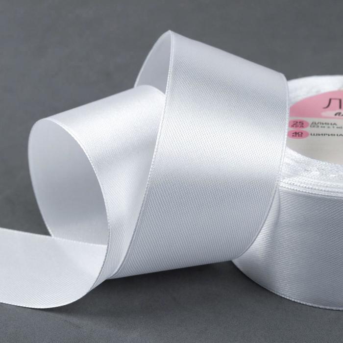Лента атласная, 40 мм * 23 м, цвет белый №01