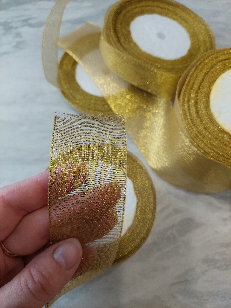 Набор парчовых лент, 5 шт, размер лент: 6/10/20/40/50 мм, 23 , золотая