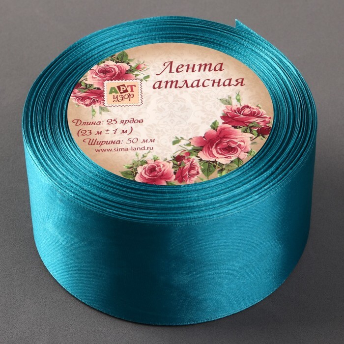 Лента атласная, 50 мм * 23 м, цвет морская волна №47