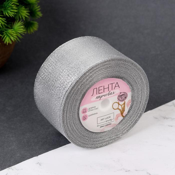 Лента парчовая, 50 мм, 23 м, цвет серебряный