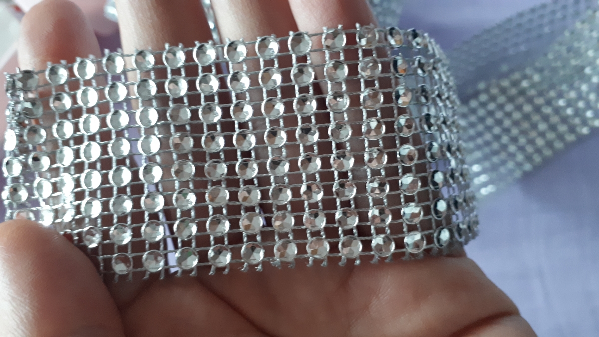 Лента с имитацией страз, 4 см, 9 м, цвет серебряный