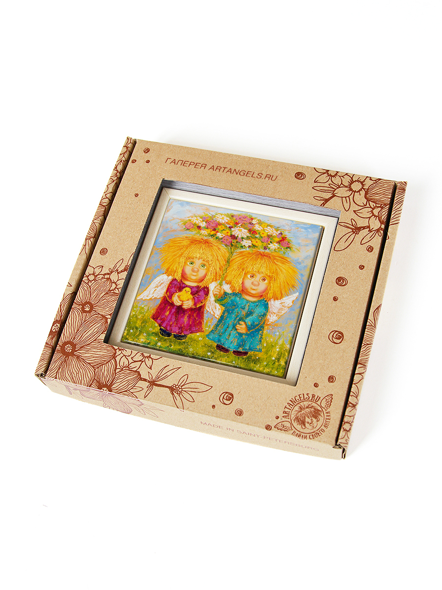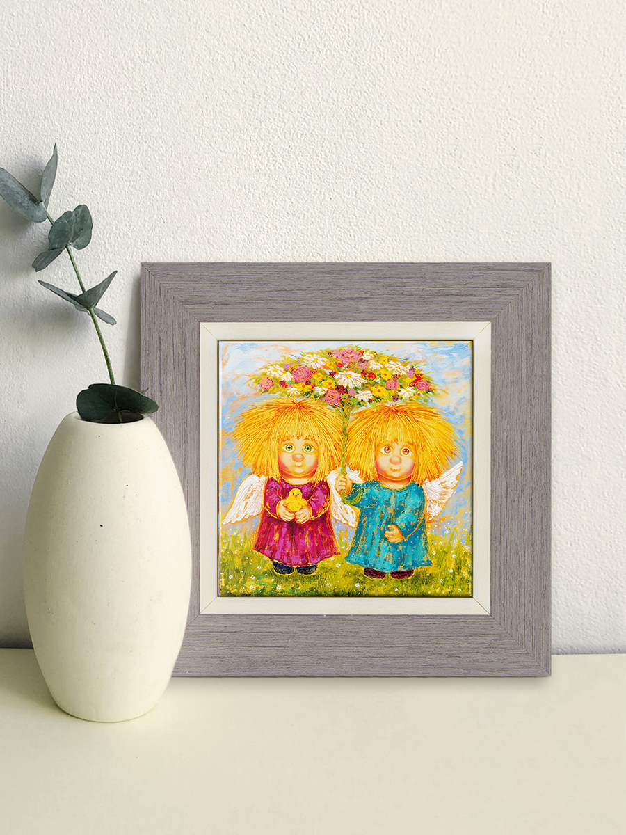 "Ангелы большого счастья" Керамика в багете 10х10 см