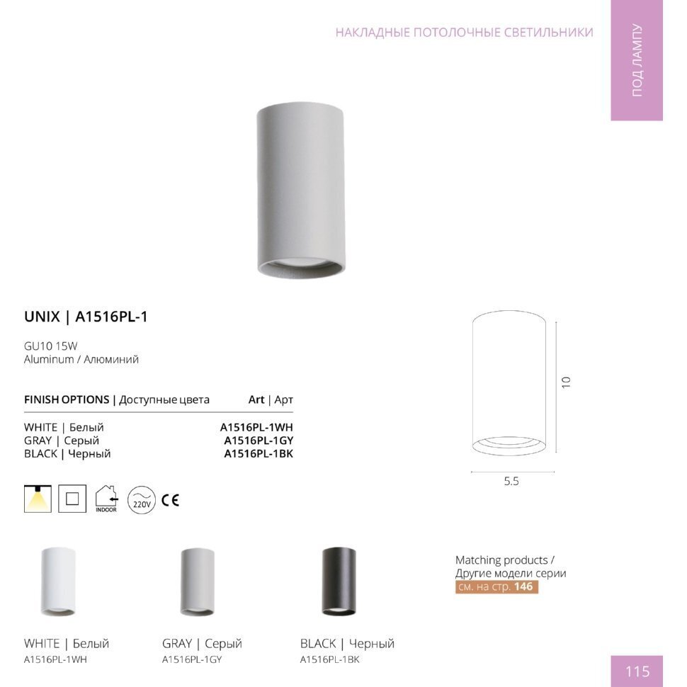 Спот Arte Lamp UNIX A1516PL-1GY , GU10, 50 Вт