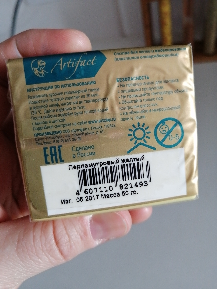 Полимерная глина, суперпрочная, № 448 Охра золотистая 50 г