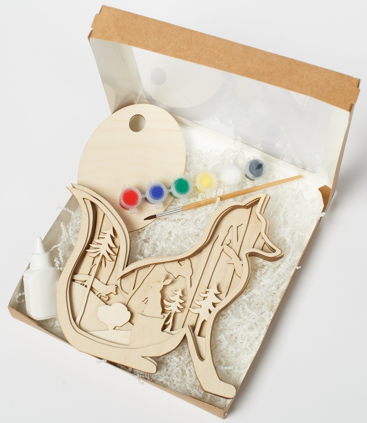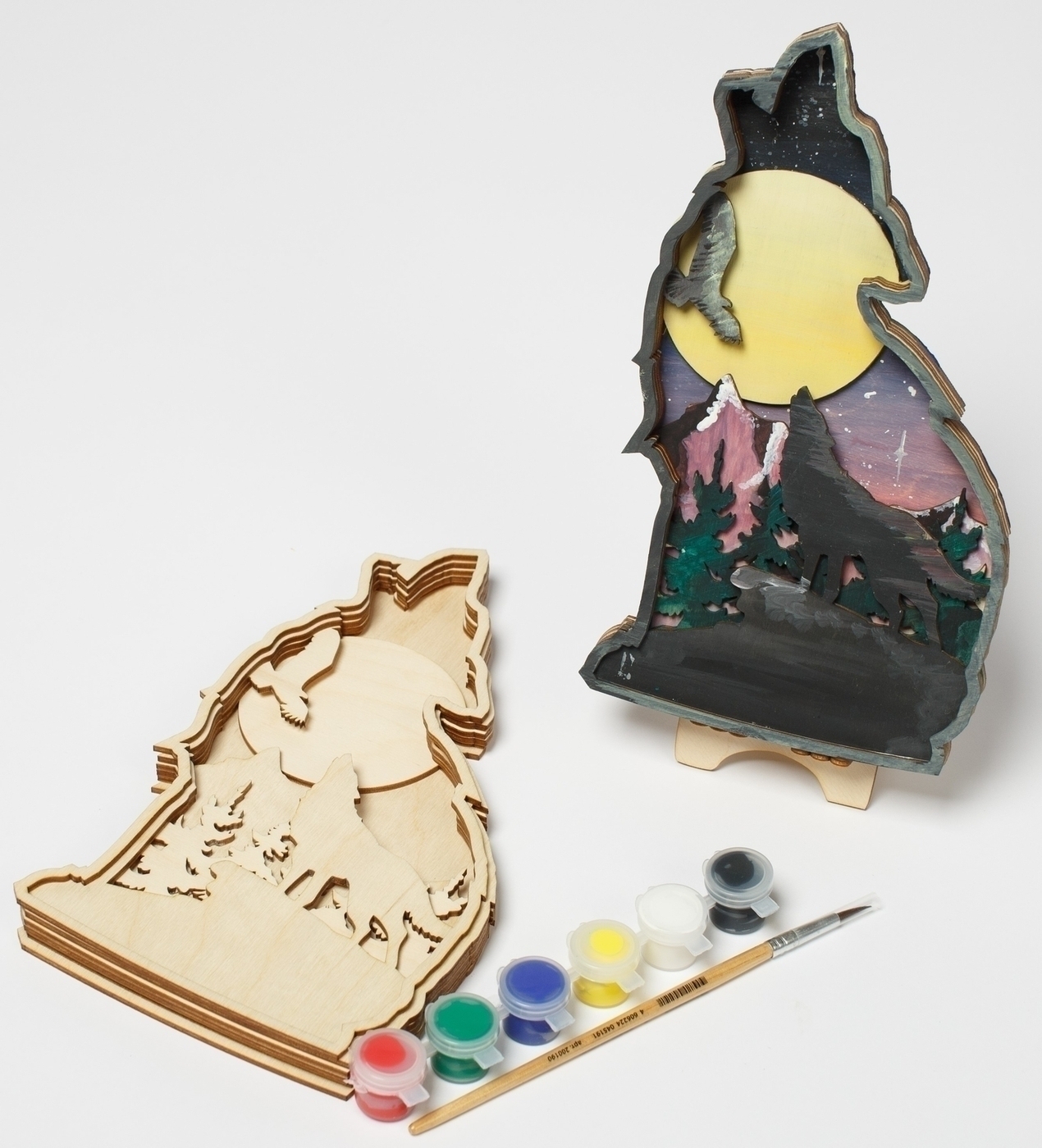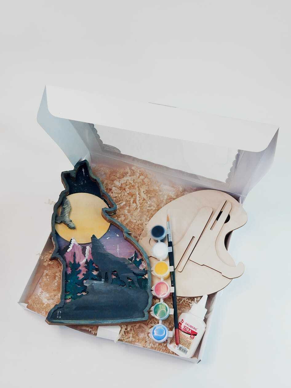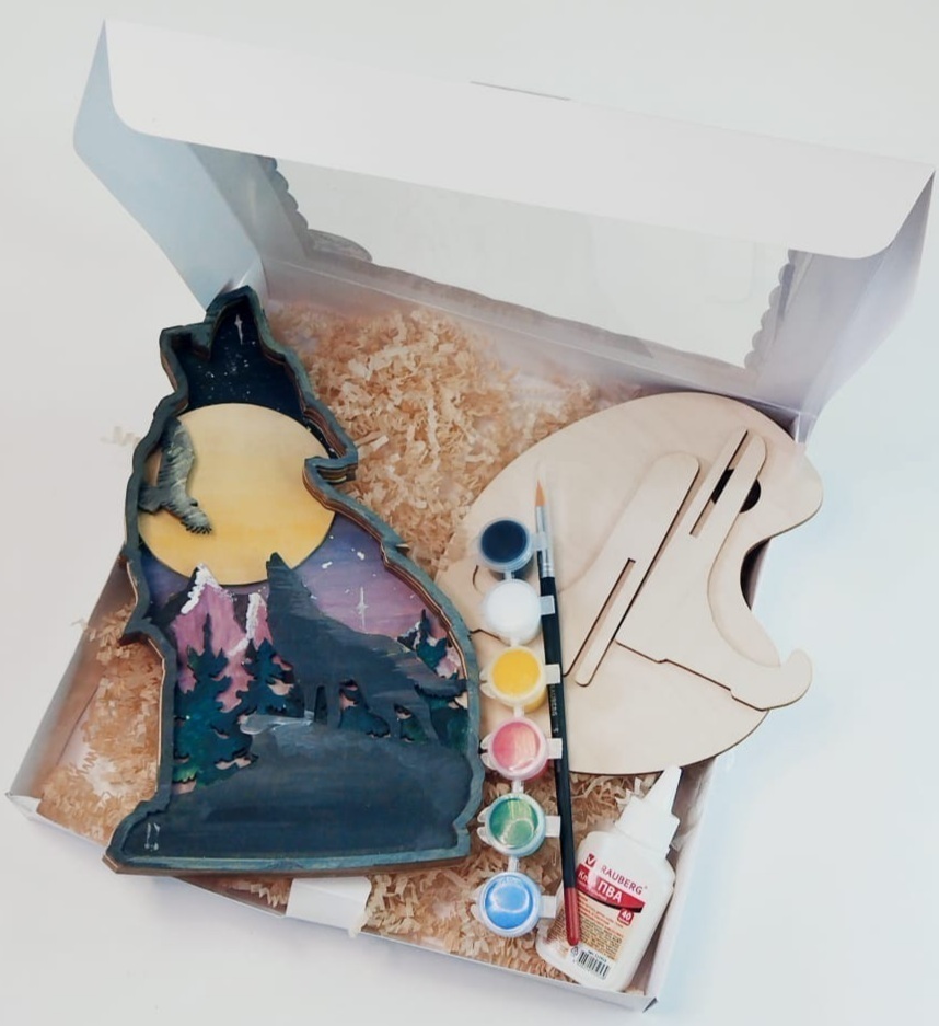 Набор для рисования Artlepota Волк / 3D раскраска из фанеры / ПОДАРОЧНЫЙ НАБОР