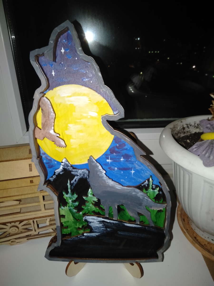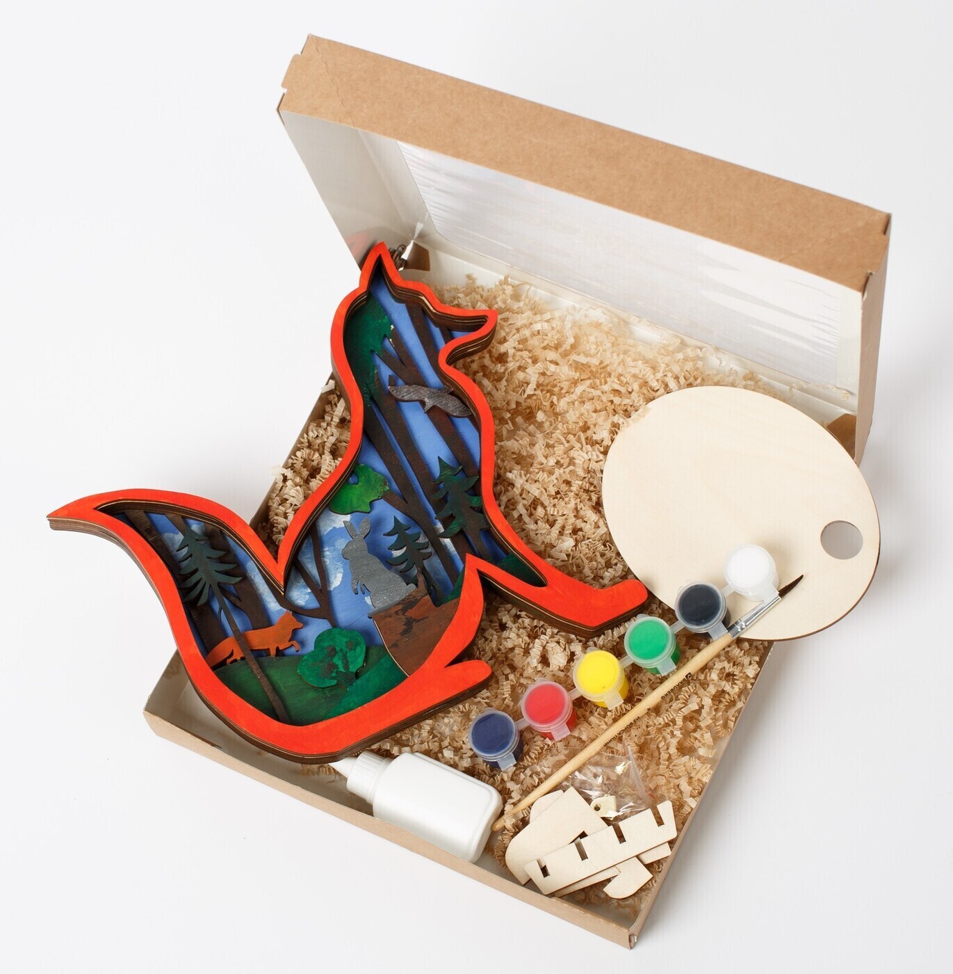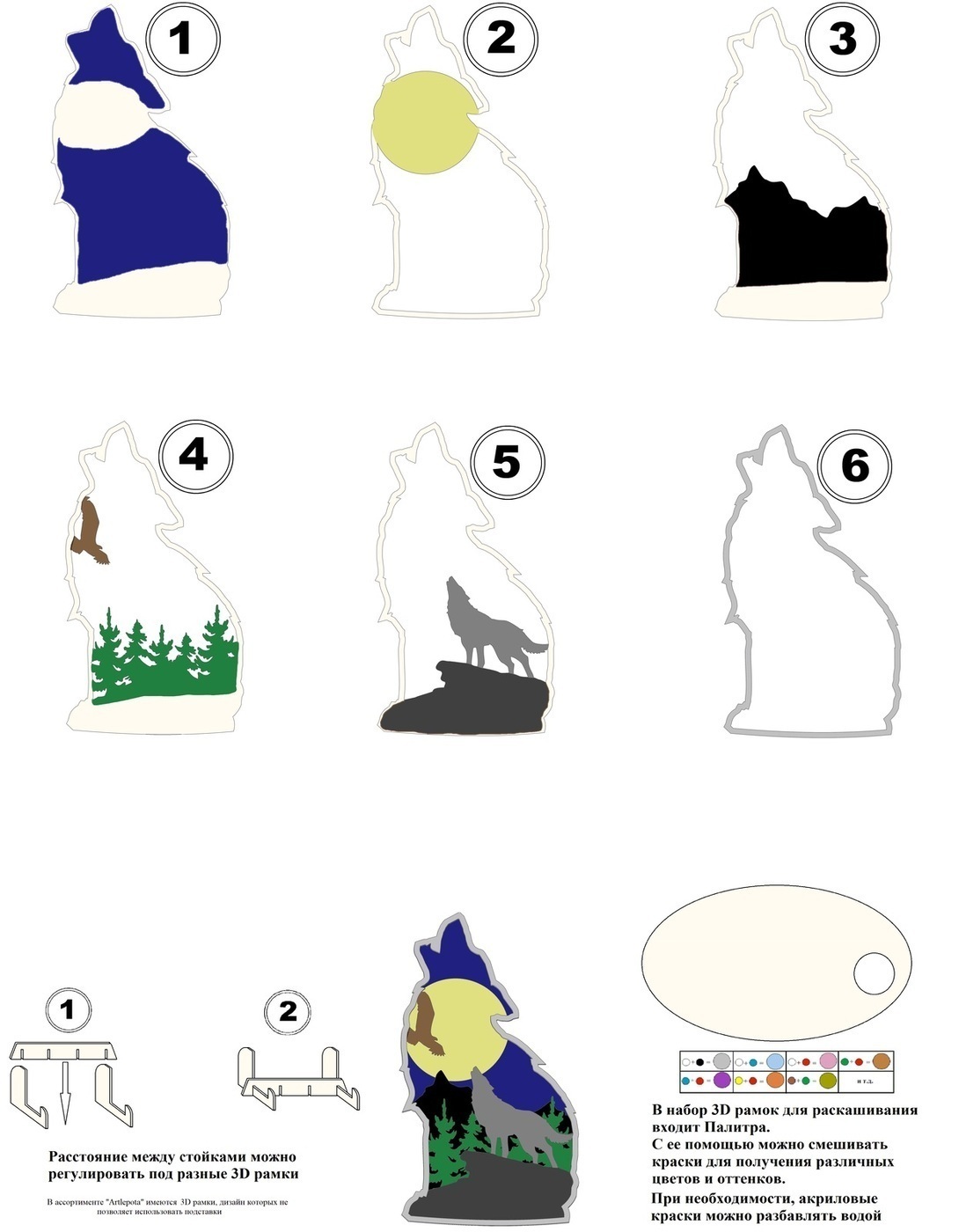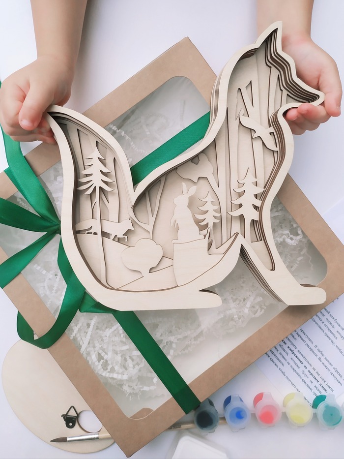 Набор для рисования Artlepota Волк / 3D раскраска из фанеры / ПОДАРОЧНЫЙ НАБОР