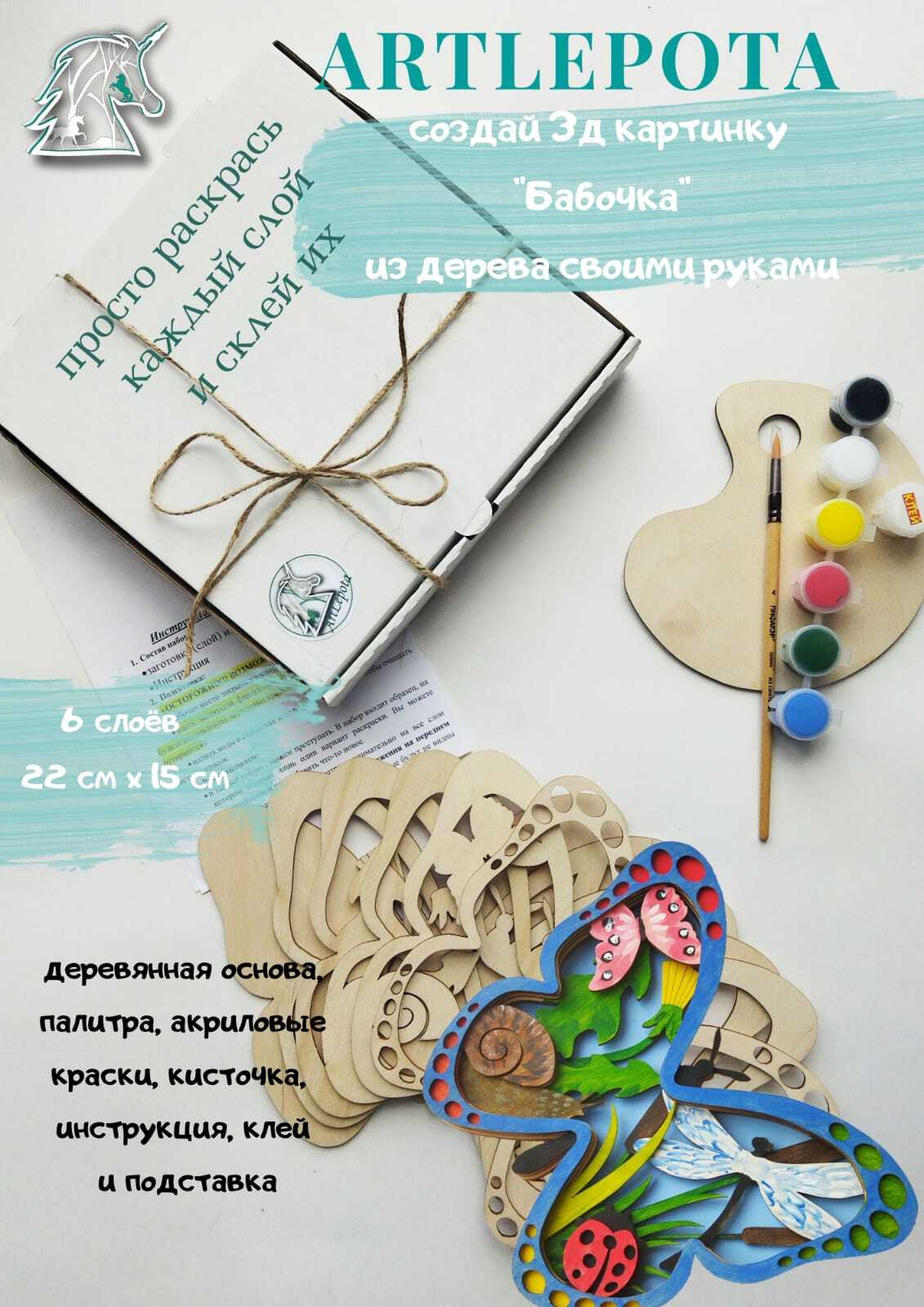 Набор для рисования Artlepota Бабочка / многослойная 3D раскраска из фанеры / СТАНДАРТ