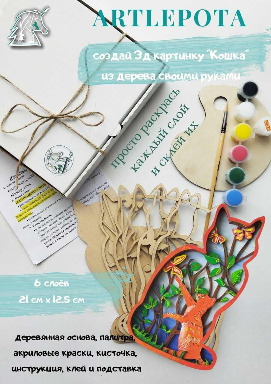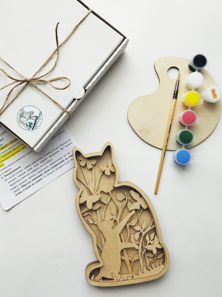 Набор для рисования Artlepota Кошка /3D раскраска из фанеры / СТАНДАРТ