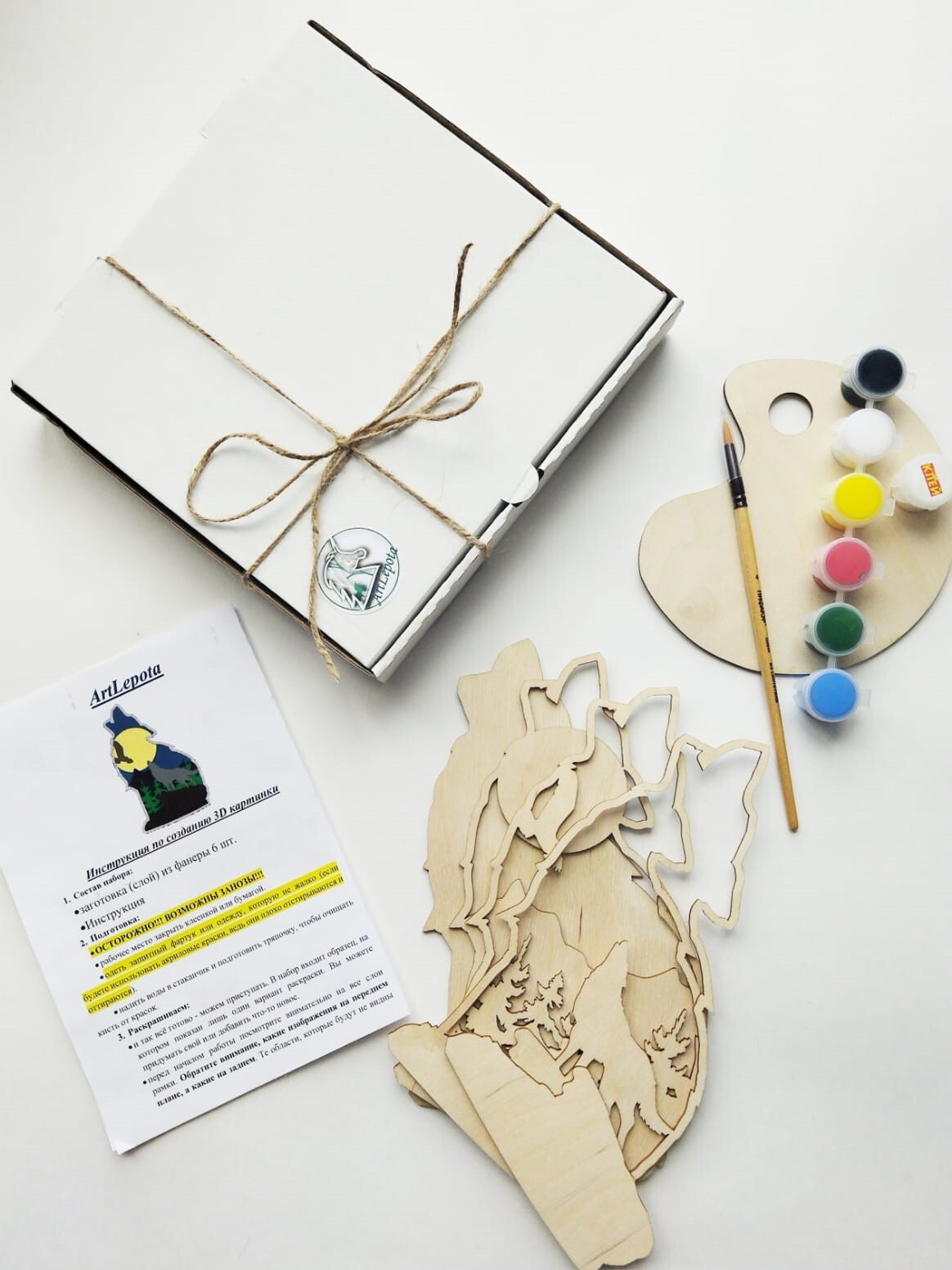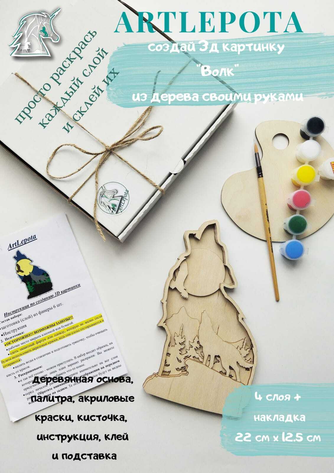 Набор для рисования Artlepota Волк / 3D раскраска из фанеры / СТАНДАРТ