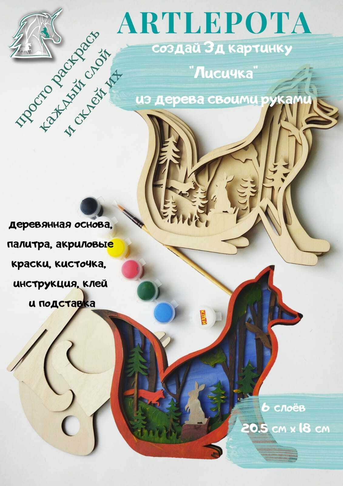 Набор для рисования Artlepota Лисичка / 3D раскраска / СТАНДАРТ