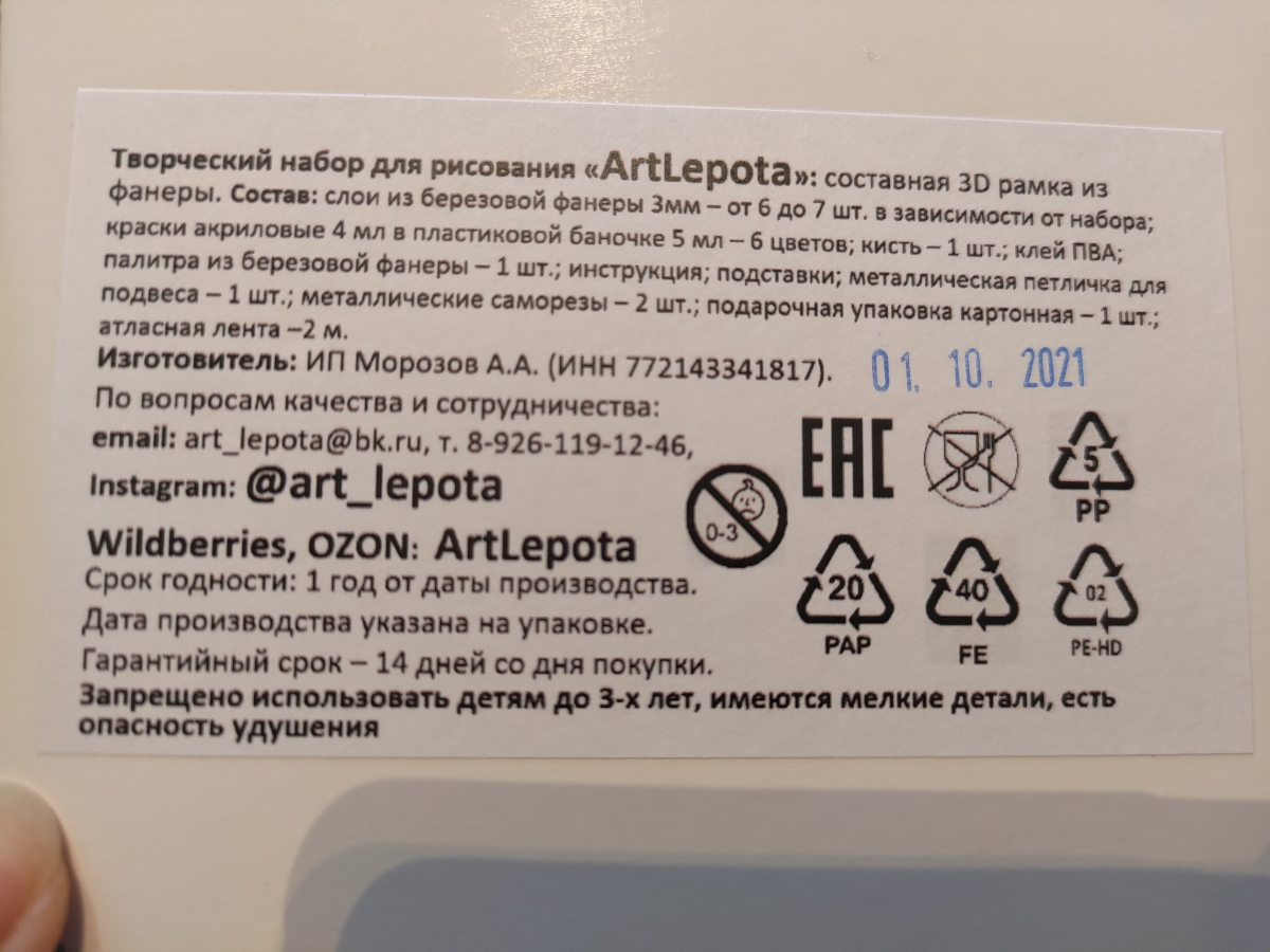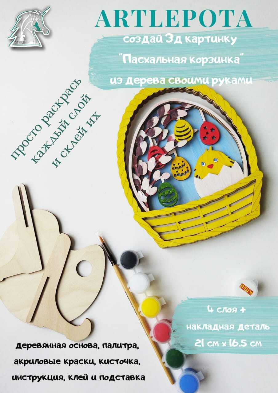 Набор для рисования Artlepota Пасхальное яйцо / 3D раскраска из фанеры / СТАНДАРТ
