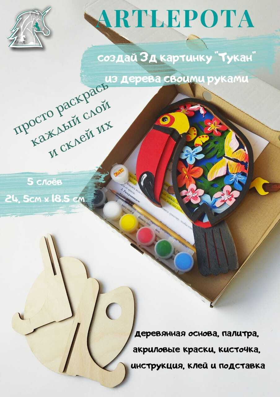 Набор для рисования СТАНДАРТ Тукан / 3D раскраска / Подарок взрослому или ребенку